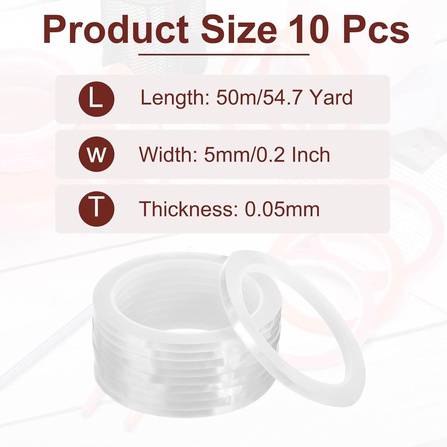 - This Art Tape is in size of: Length: 50m/54.7 Yard; Width: 5mm/0.2 Inch; Thickness: 0.05mm; Material: PET; Color: Clear; Temperature Resistance: 100Β°C; In the Package of: 10 x Whiteboard tapes