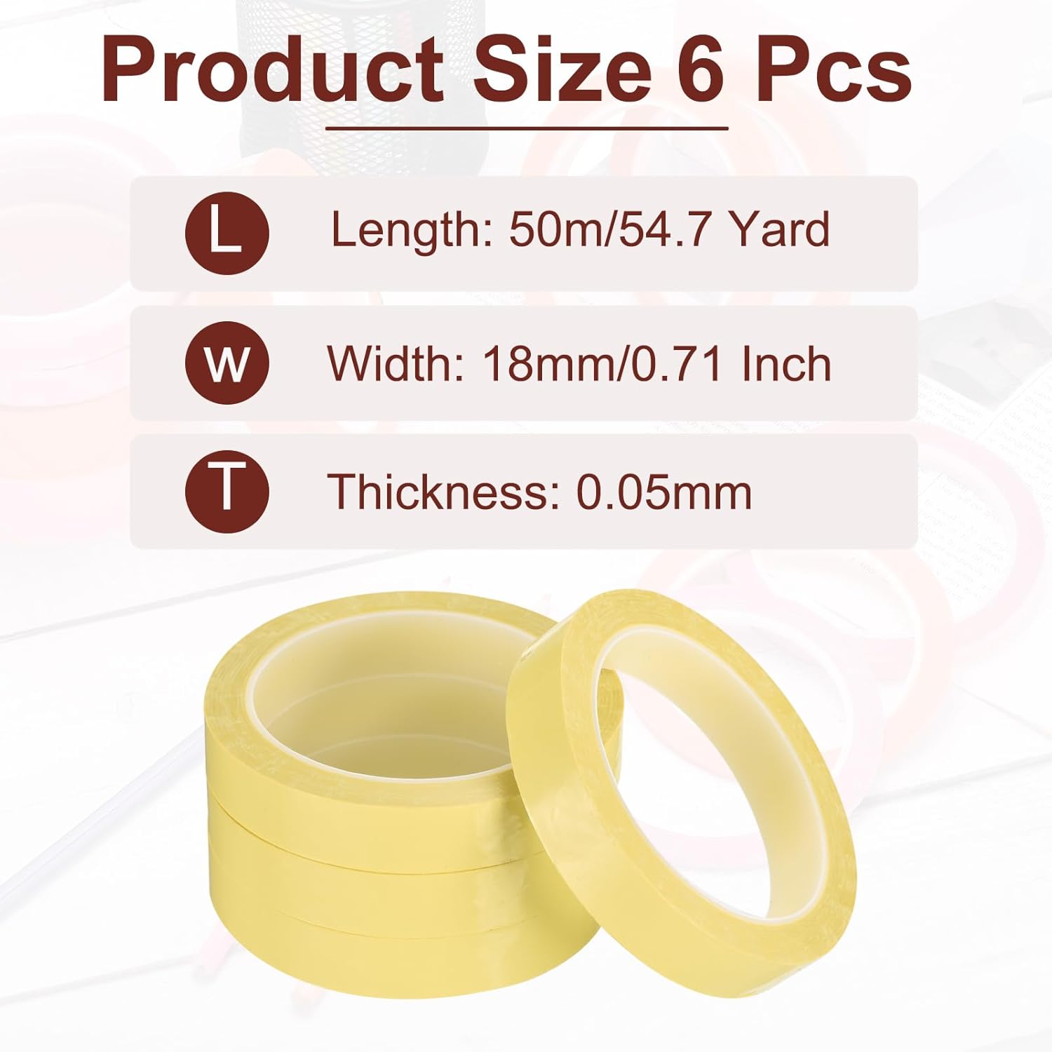 - This Art Tape is in size of: Length: 50m/54.7 Yard; Width: 18mm/0.71 Inch; Thickness: 0.05mm; Material: PET; Color: Light Yellow; Temperature Resistance: 60Β°C; In the Package of: 6 x Whiteboard tapes