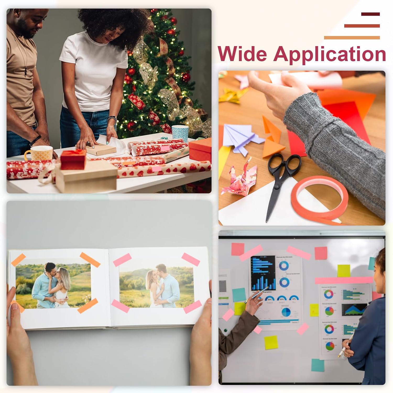 - These Thin art tapes have strong adsorption capacity and can perfectly adhere to surfaces such as wood, metal, glass, plastic, etc., without leaving sticky residues when removed, providing better protection for the surface of the item. It has a wide range of applicability and can be used for phone cases, storage boxes, desks, coffee tables, household appliances, or for sealing envelopes, diaries, DIY crafts, Christmas gift packaging, and scrapbook paper with labels and stickers.