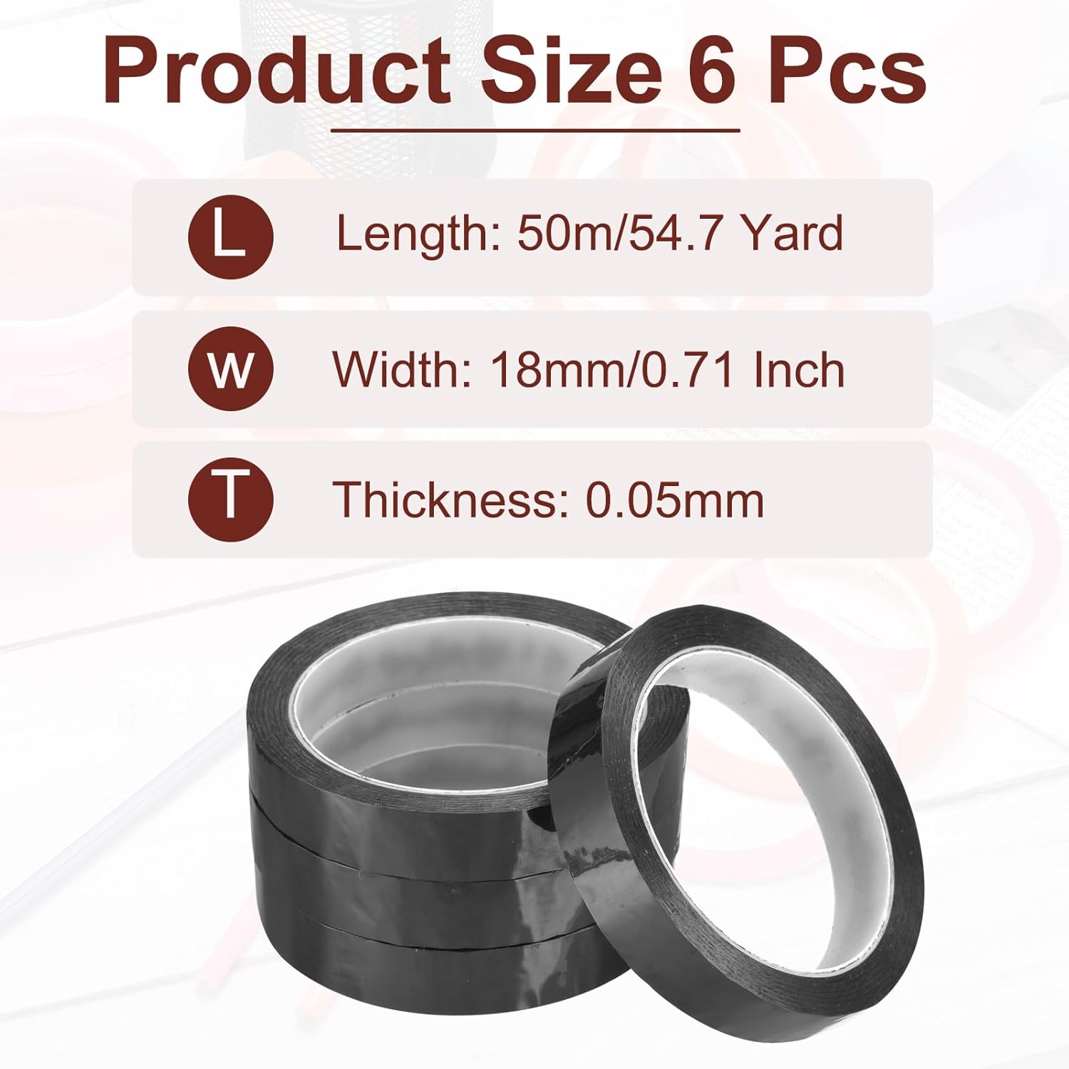 - This Art Tape is in size of: Length: 50m/54.7 Yard; Width: 18mm/0.71 Inch; Thickness: 0.05mm; Material: PET; Color: Black; Temperature Resistance: 60Β°C; In the Package of: 6 x Whiteboard tapes