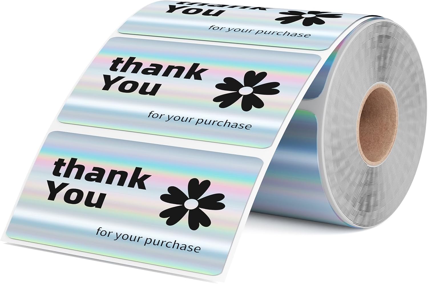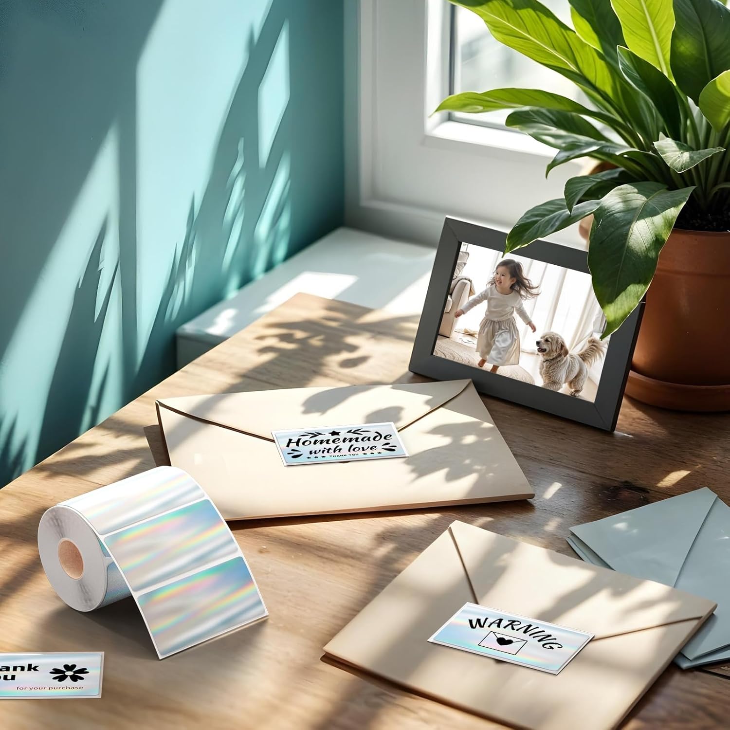 2.25x1.25 Inch Thermal Labels Sliver, Holographic Sliver Barcode Thermal Labels for Thermal Printer and Small Business, Multi-Purpose Rectangle Stickers, 500 Sheets/Roll