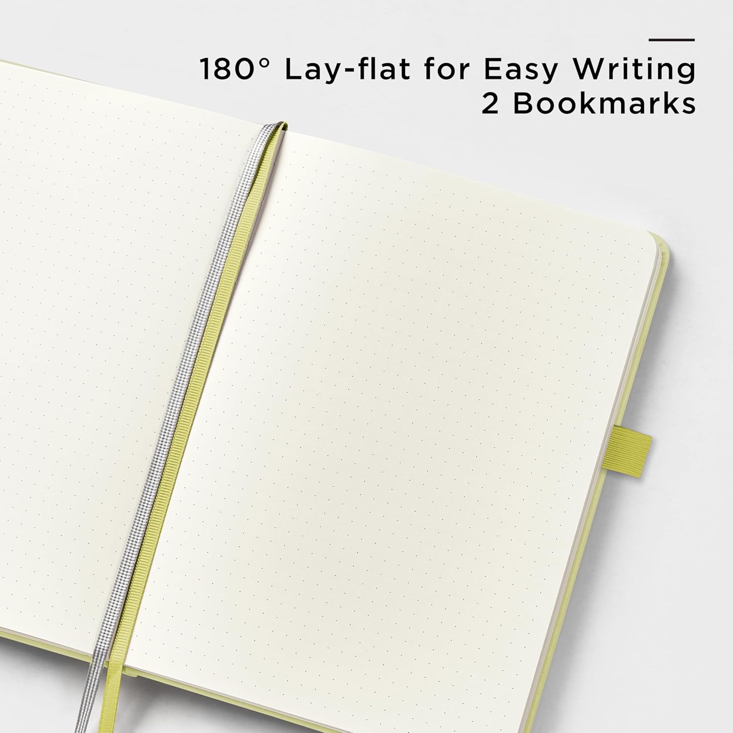 - 180° LAY-FLAT DESIGN: The lay-flat design allows for easy writing and ensures that you can utilize every page efficiently. Journaling, note-taking and planning has never been easier! 2 Bookmarks to help you find important content faster