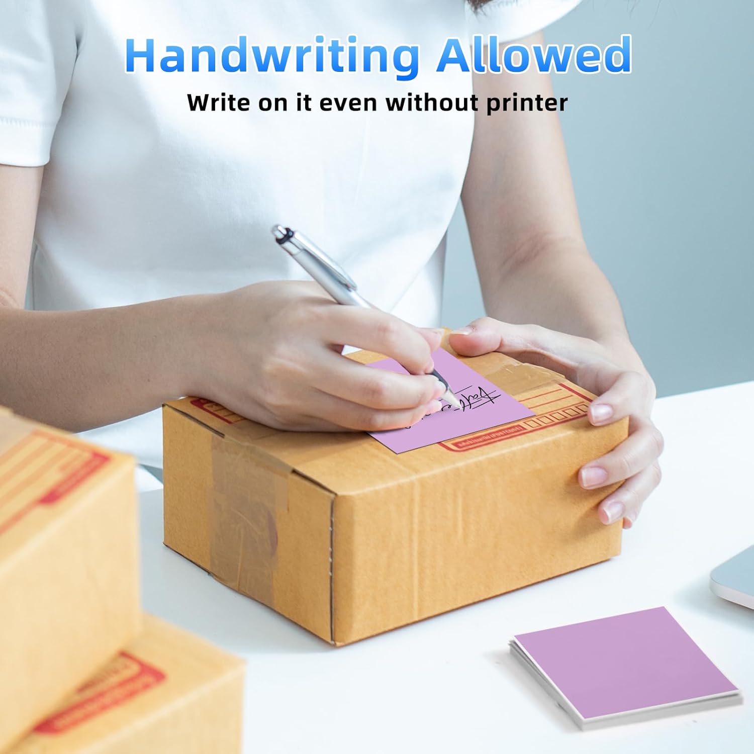 - Packs 4x6 Purple Thermal Labels - Size: 4x6 inches, 1 packs of 500 labels. The shipping labels are packed in a nice box to prevent damage. It is only suitable for thermal printers and NOT for laser or inkjet printers