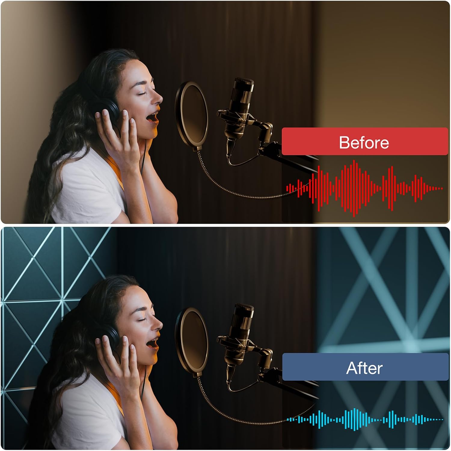 - Easy Installation: These soundproof foam panels come with self-adhesive backing, making them incredibly simple to install. Simply peel off the protective film and stick them to any clean, dry surface, such as walls or ceilings