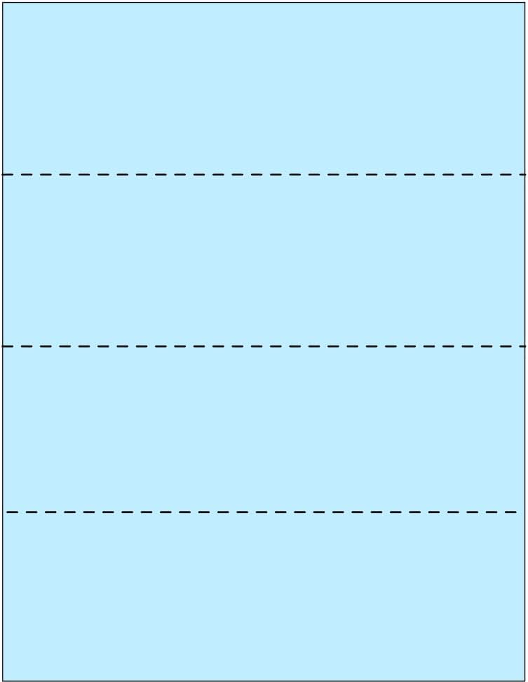 Limited Papers (TM) 8.5x11 Perforated Paper, 20/50 Pound, 75 GSM, Variety of Perforation Sizes and Colors, for Forms, Tickets, Postcards, Business Cards. (Blue, 4 up - horizontal every 2.75")