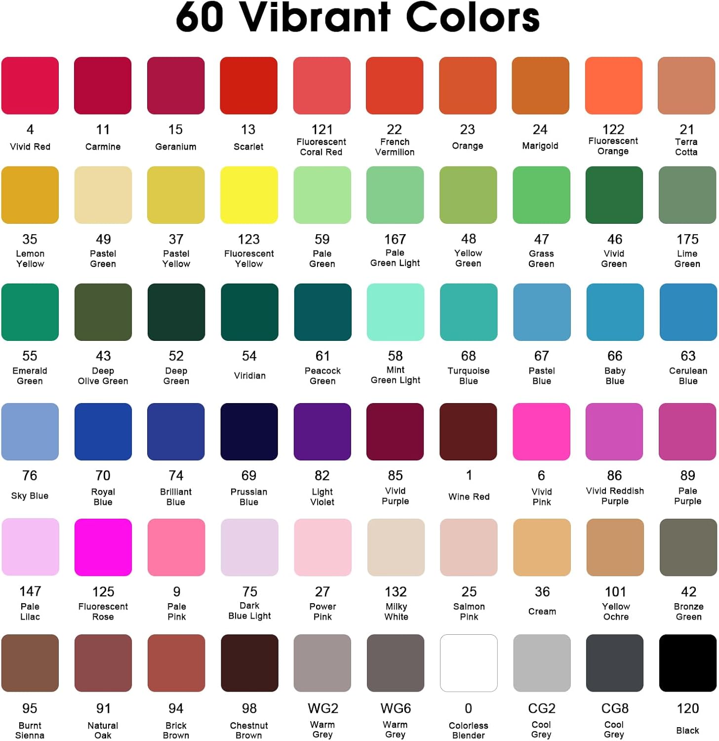 - Portable & Organized Creativity: Store all 60 colors brush tip alcohol markers in the premium zippered case with a shockproof base tray. Color-coded caps and numbered labels let you quickly find shades like markers for coloring books pros โ no more messy desks! Take your alcohol markers set anywhere for on-the-go inspiration.