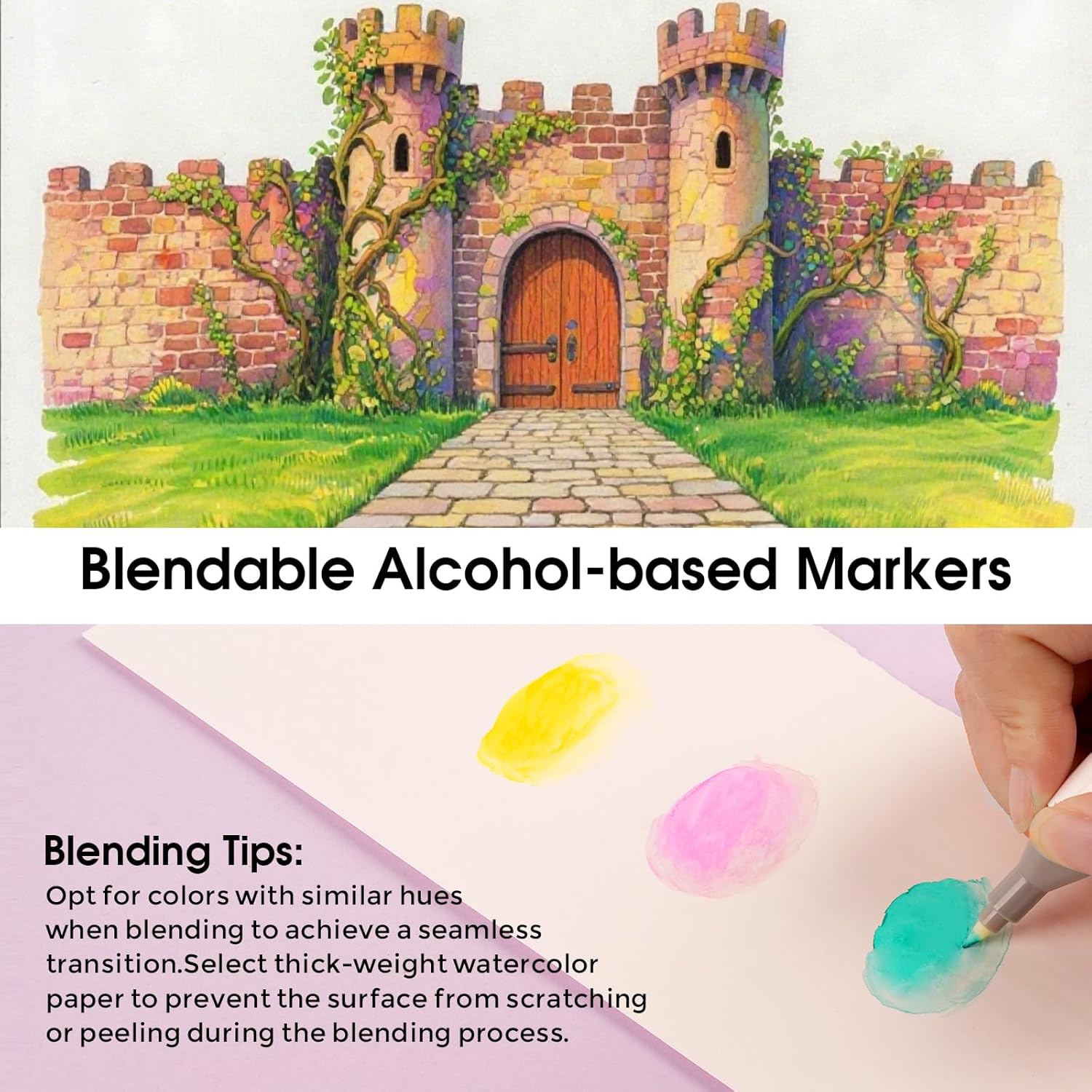 - Vibrant Blendable Colors: Unleash your creativity with 60 colors brush tip alcohol markers featuring ultra-smooth alcohol-based ink that blends seamlessly. Perfect for adult coloring books, these no-bleeding coloring markers deliver rich, fade-resistant hues for professional illustrations, manga art, or casual sketching.