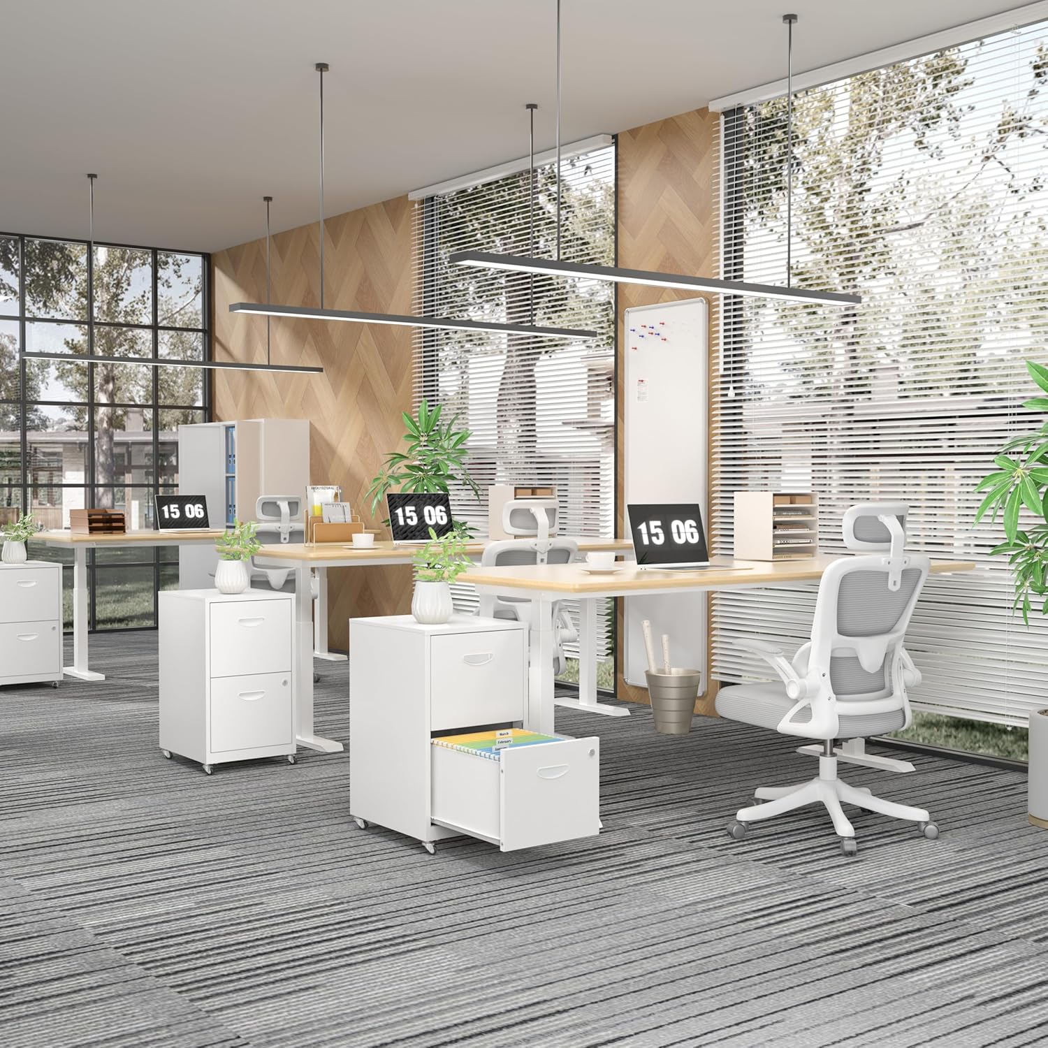 2 Drawer File Cabinet with Lock,White Rolling File Cabinet for Home Office, Metal Small Mobile Filing Cabinets on Wheels for Hanging Letter