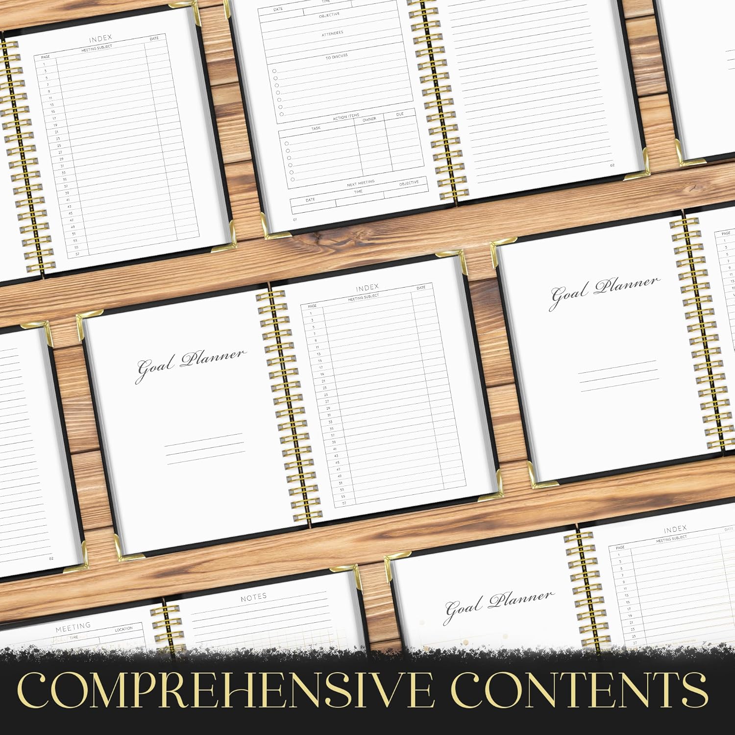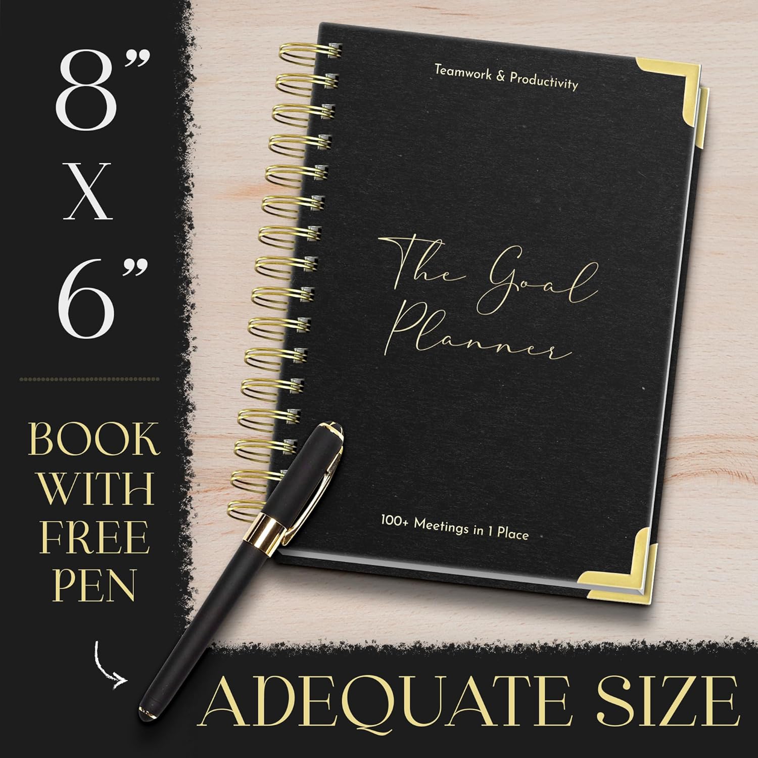 - Complete Work Planner Set – This meeting notebook for work includes a professional black ink pen, making it the perfect set for taking notes, managing to do lists, or organizing tasks at the office or during meetings.