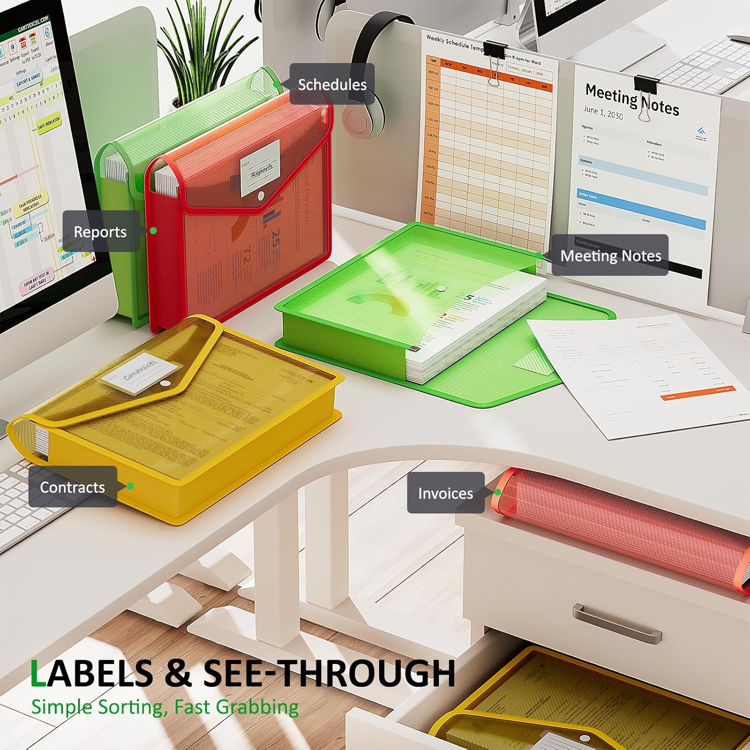 - PERFECT COLOR CODING:The see - through file folder envelopes come in various colors. Paired with label areas, they are easy to set up a color - coded filing system, enabling quick access to your files and boosting work and study efficiency.