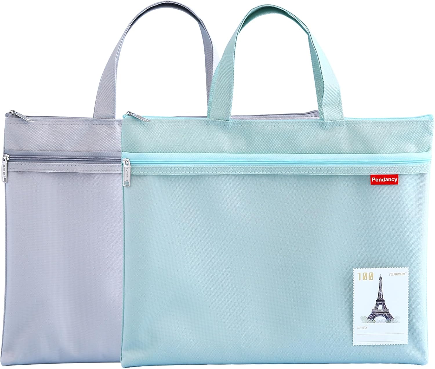 Pendancy Mesh Zipper Pouch 11x13.7 in, 2 pcs Large Double Pocket Waterproof File Bag with Handle, A4 Size Foldable Document Storage for Puzzle Project/Cross Stitch/Travel/Office(Gray Green)