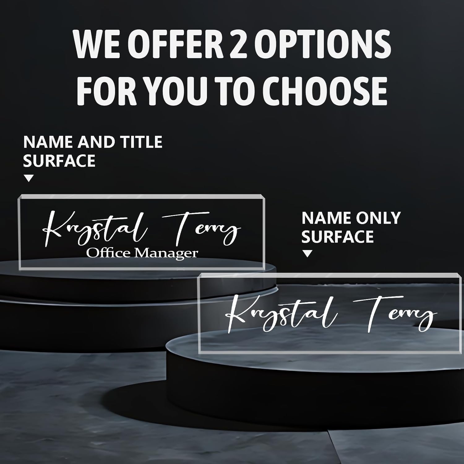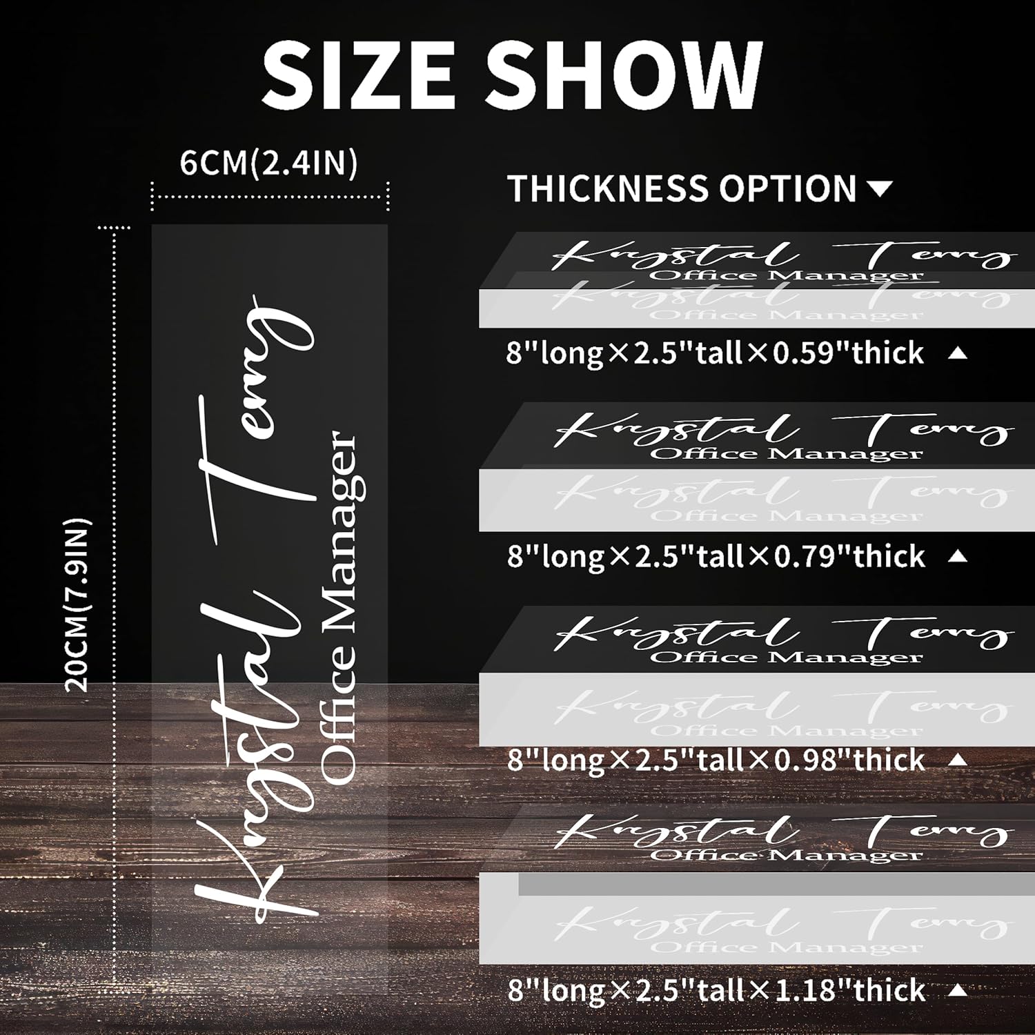 - 【Perfect Office Decor】Desk name plate personalized may be an indispensable item around you. It can be used as decoration for various occasions, such as offices, study rooms, conference rooms, classrooms. It also comes in 4 different sizes, suitable for different office scenarios, Clear 3D effects showcase your favorite fully designs and names, add an extra touch of elegance to your office.