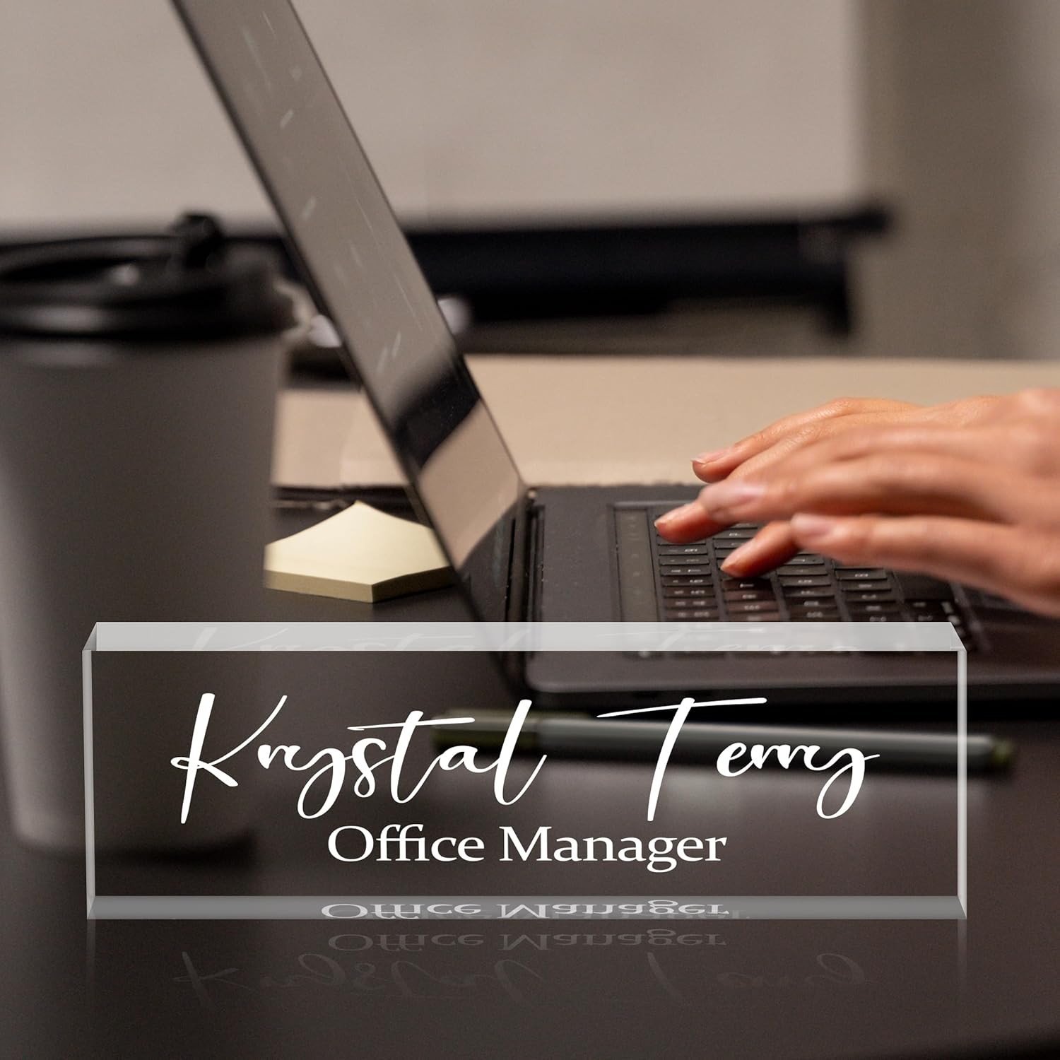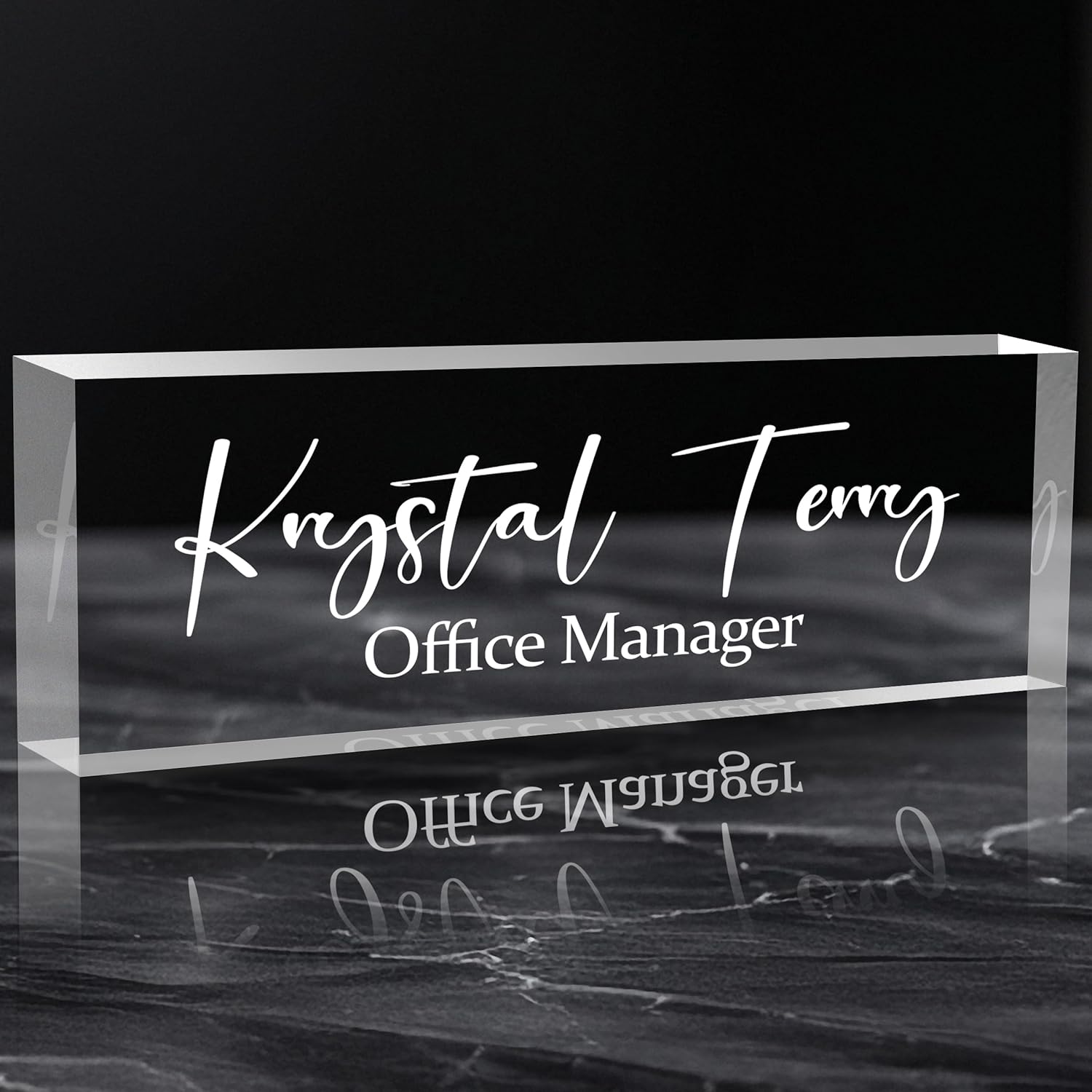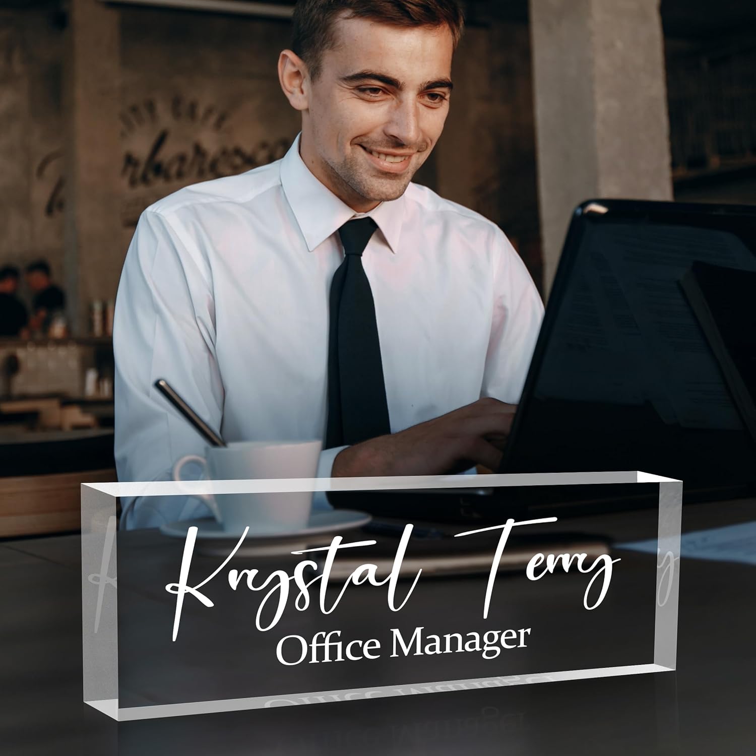 Personalized Name Plate for Desks, Custom Desk Name Plates, Acrylic Name Plate Office Desk Accessories, Personalized Office Gifts for Coworkers Teachers, Employee Appreciation Gifts (Engraved)