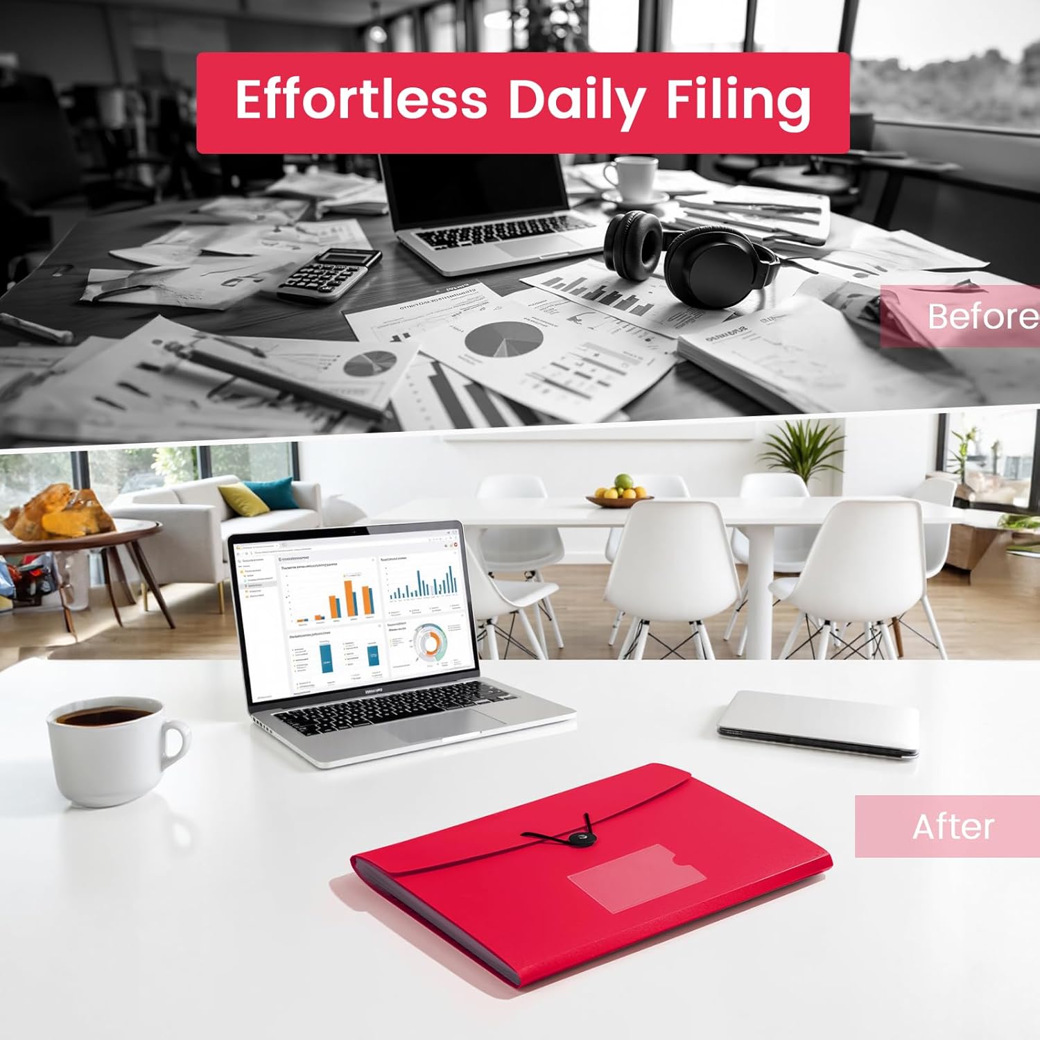 - Elastic Buckle Design: The expanding file folder features a flap with elastic cord closure, protecting documents safe and firmly in place during transport