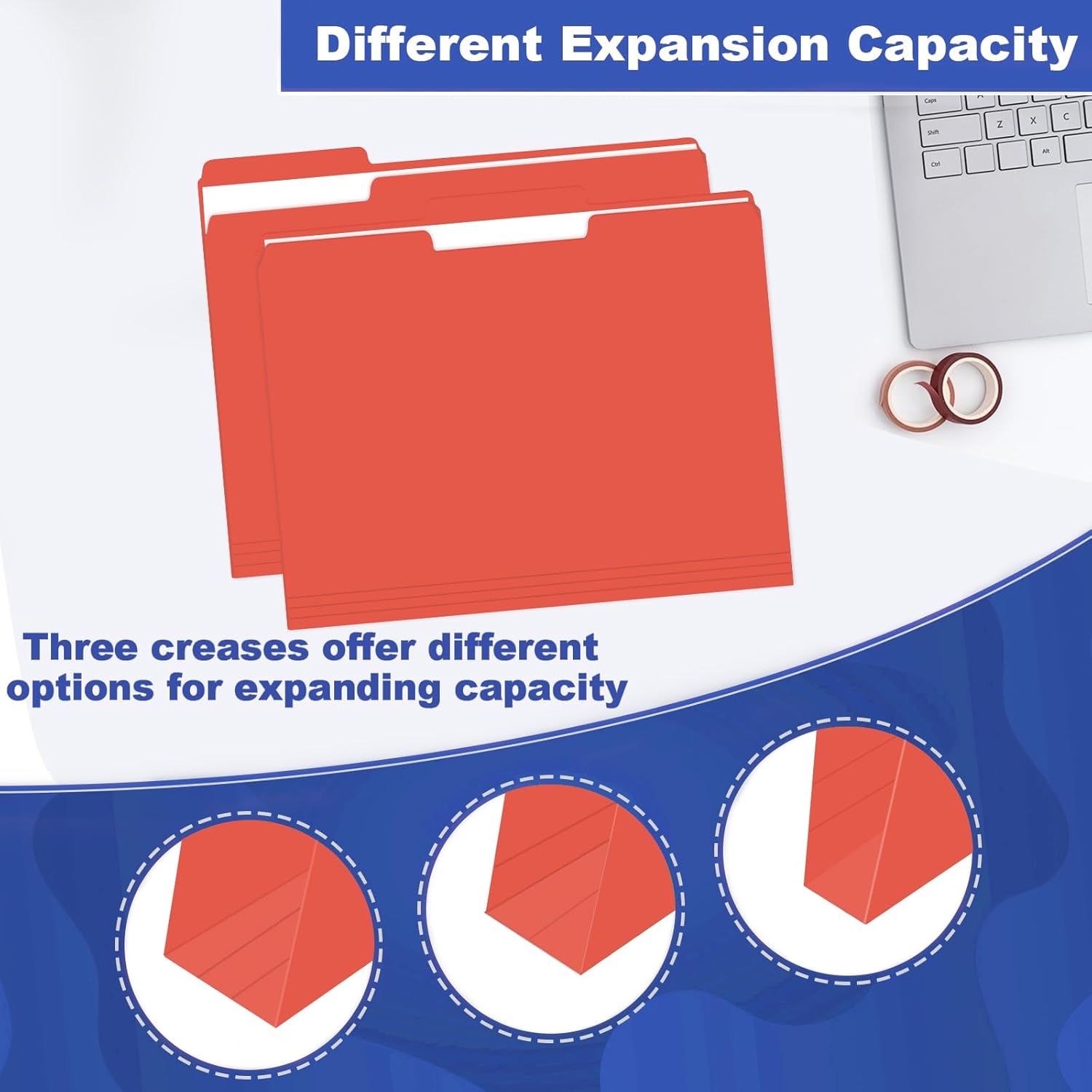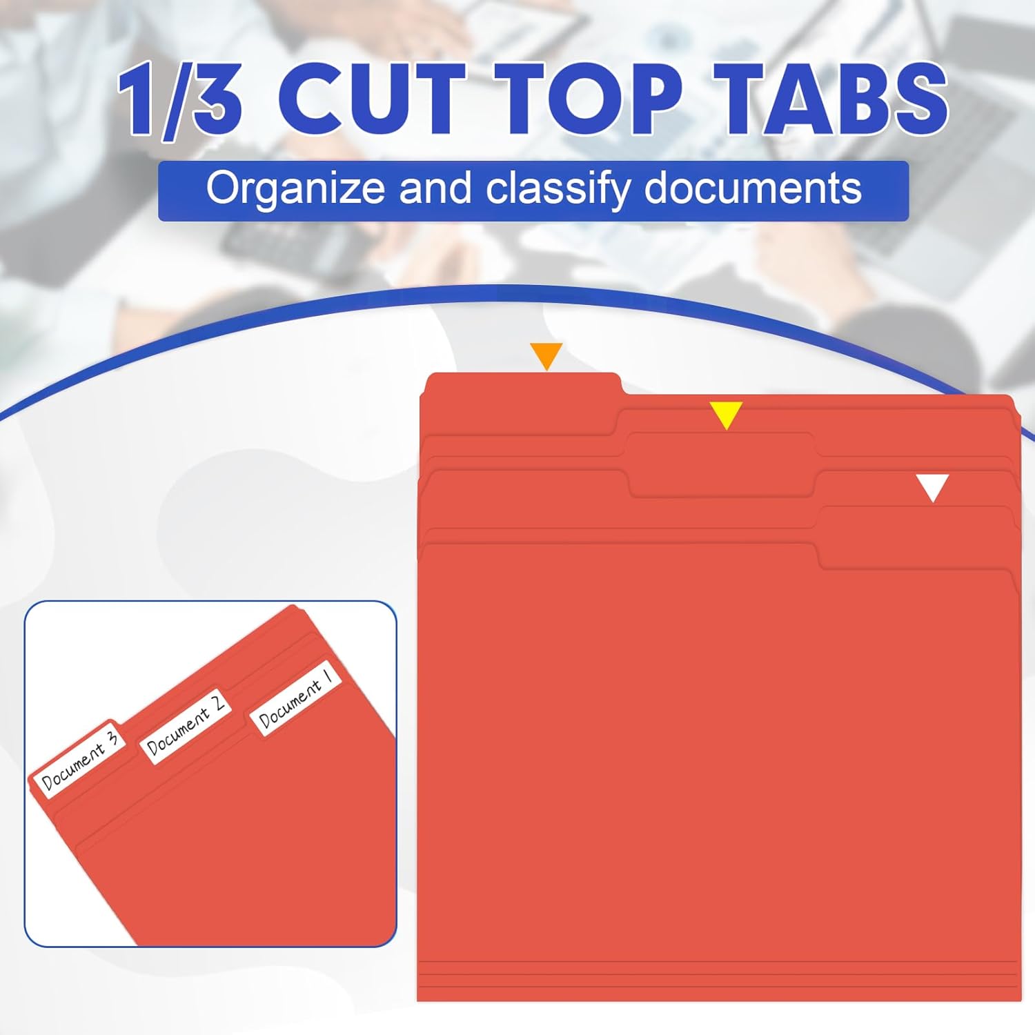 - ECONOMICAL & ECO-CONSCIOUS: Protect the environment by using tabs made with recyclable paper. Recyclable red filing folders (120-count) for neatly storing and organizing documents.