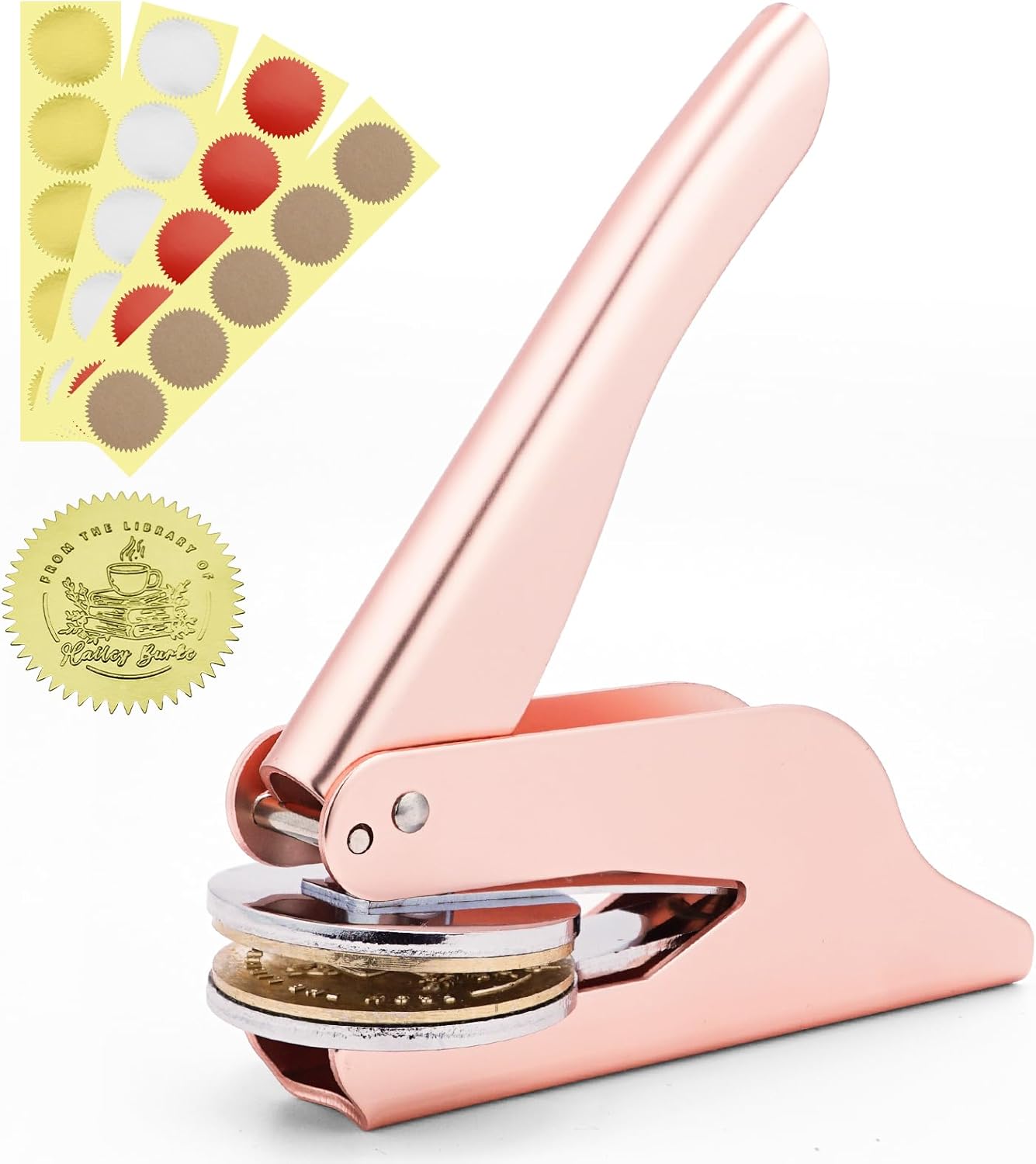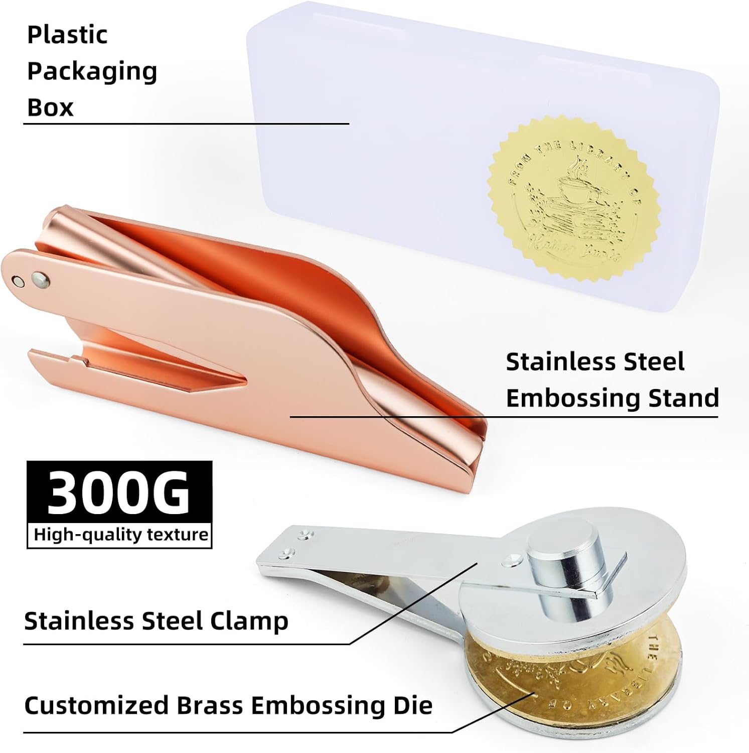 - 【Color and Style Choices】The Embosser Stamp Custom is available in Rose Gold, Gold, Gunmetal Black, and Silver, with additional Rose Pattern designs in Rose Gold and Gold.