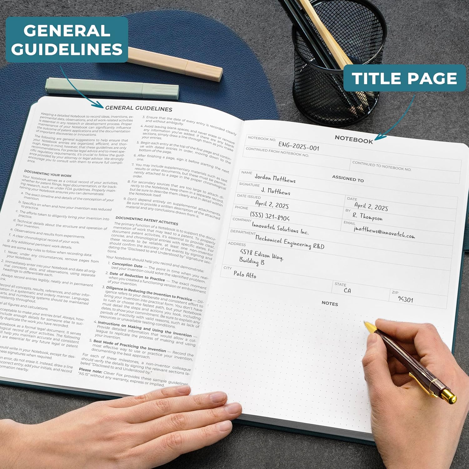 Clever Fox Engineering Notebook – Hardcover Grid Notebook with Numbered Pages, Table of Contents – Patent, Lab & Invention Journal for Engineers & STEM (Dark Teal)