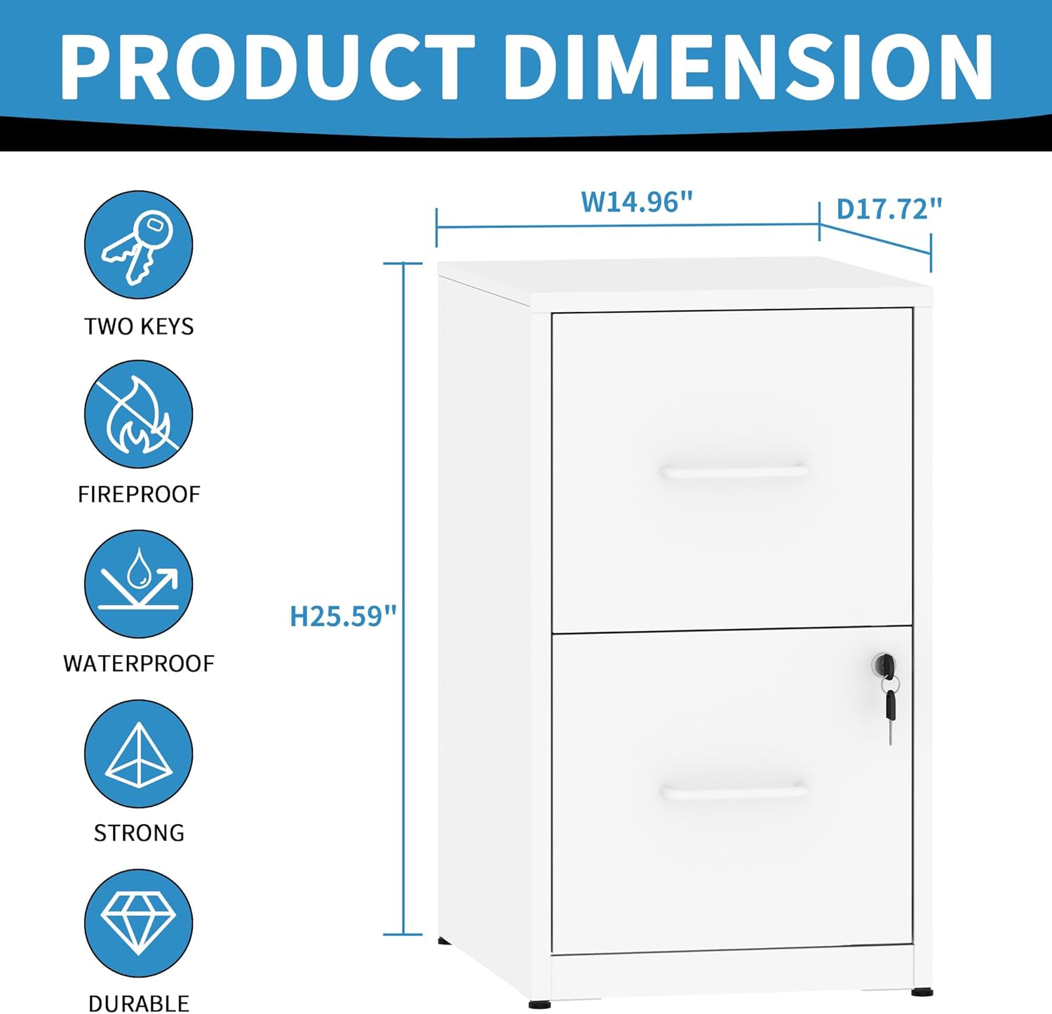 - 【Secure Lock Design】Our office filing cabinets with 2 drawers feature a locking mechanism.Equipped with 2 keys, when you leave the office, you can lock 2 drawers at once, to ensure your privacy and file security, built-in slide rail, drawer open and close smoothly, quiet, suitable for use in the office environment.