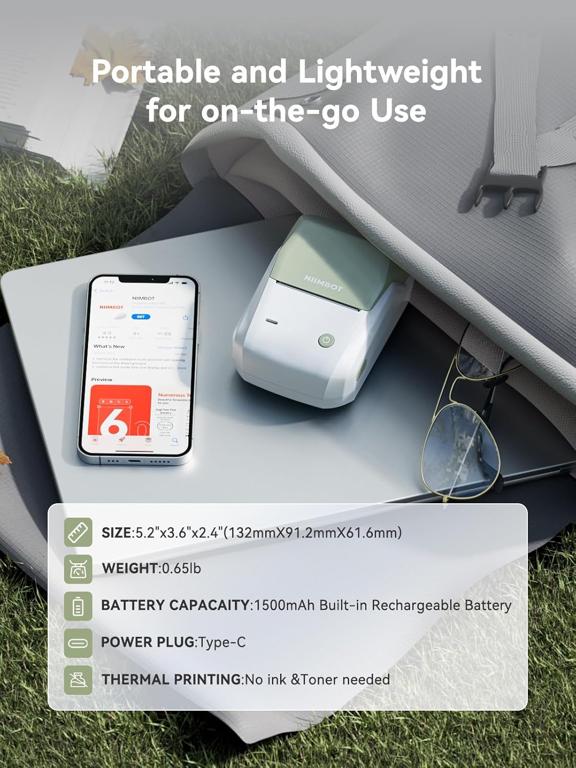 - Portable and Rechargeable: The portable thermal label printer weighs just 293g, making it compact enough to fit in your pocket and easy to carry anywhere. It features a built-in 1500 mAh rechargeable battery, providing up to 100 days of standby time on a single charge.