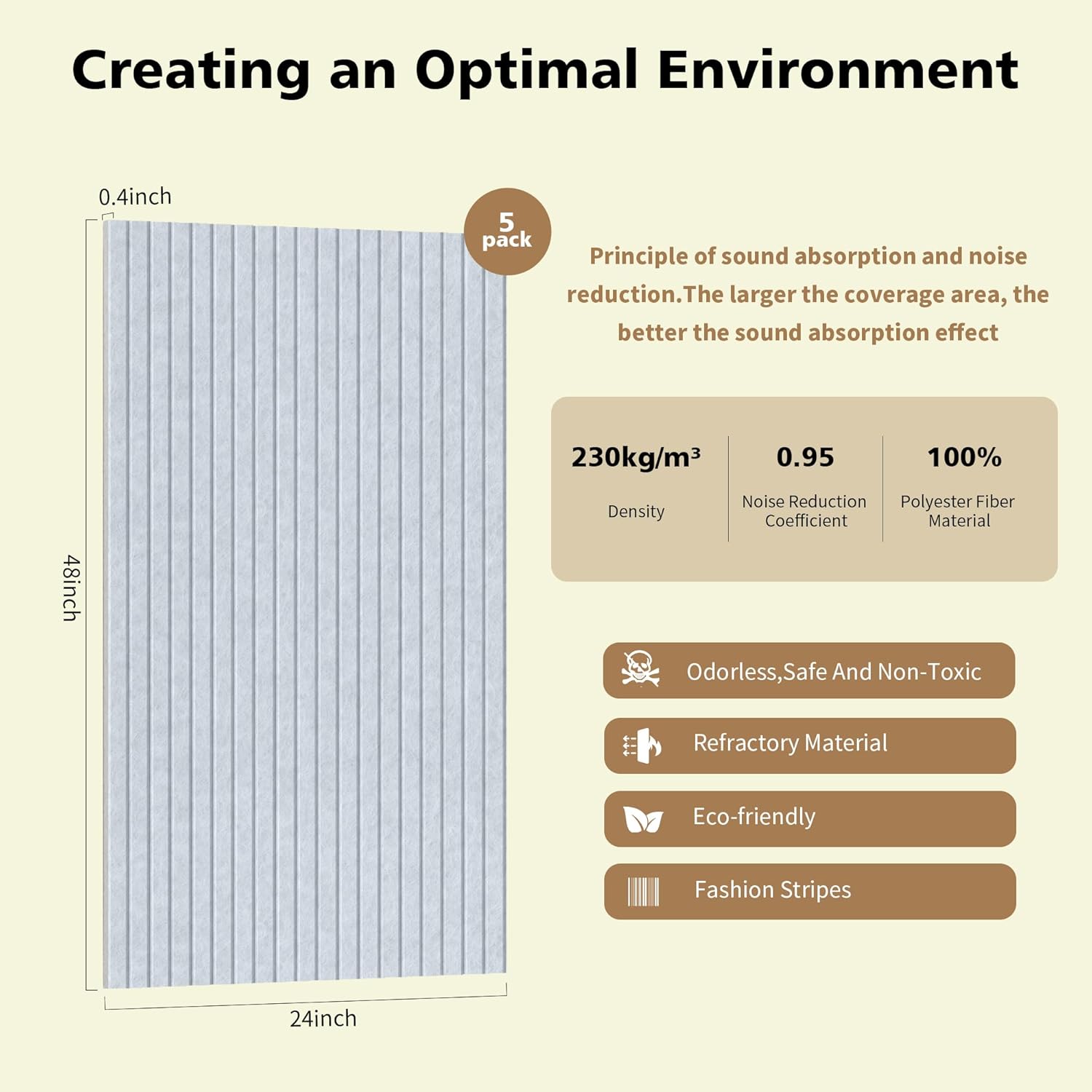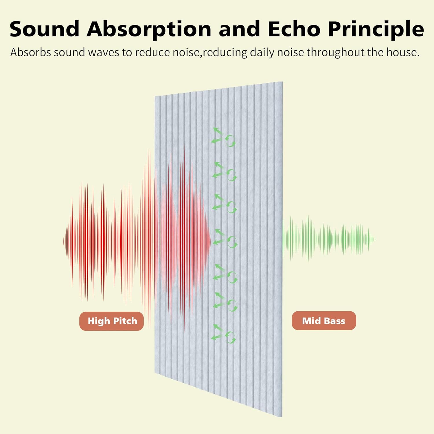 - STYLISH DECORATIVE: The noise dampening panels feature a creative slotted design and offer a wide range of colors to choose from, which can perfectly match your unique style and interior decor. Acoustic panel can be easily cut into different shapes for DIY wall art. Our soundproof wall panels use felt laminating technology to present vertical stripes in the form of large acoustic panels, which absorb unwanted sound and at the same time serve well as a decorative wall surface.