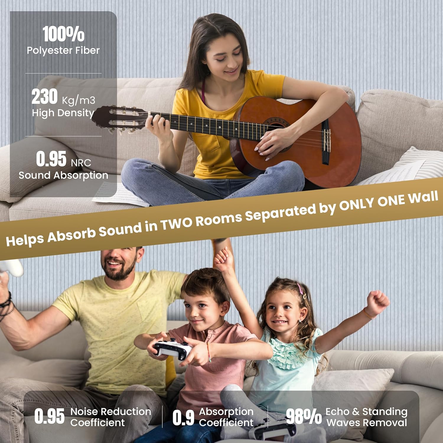 - 100% Polyester Fiber - The wall soundproofing panels is carefully made of 100% polyester fiber. Polyester fiber large acoustic panels have many advantages, such as excellent sound absorption, effective resistance to moisture and mildew, easy to cut,good stability, and has a high cost-effective.