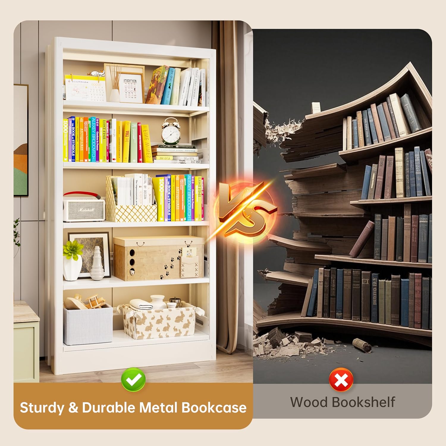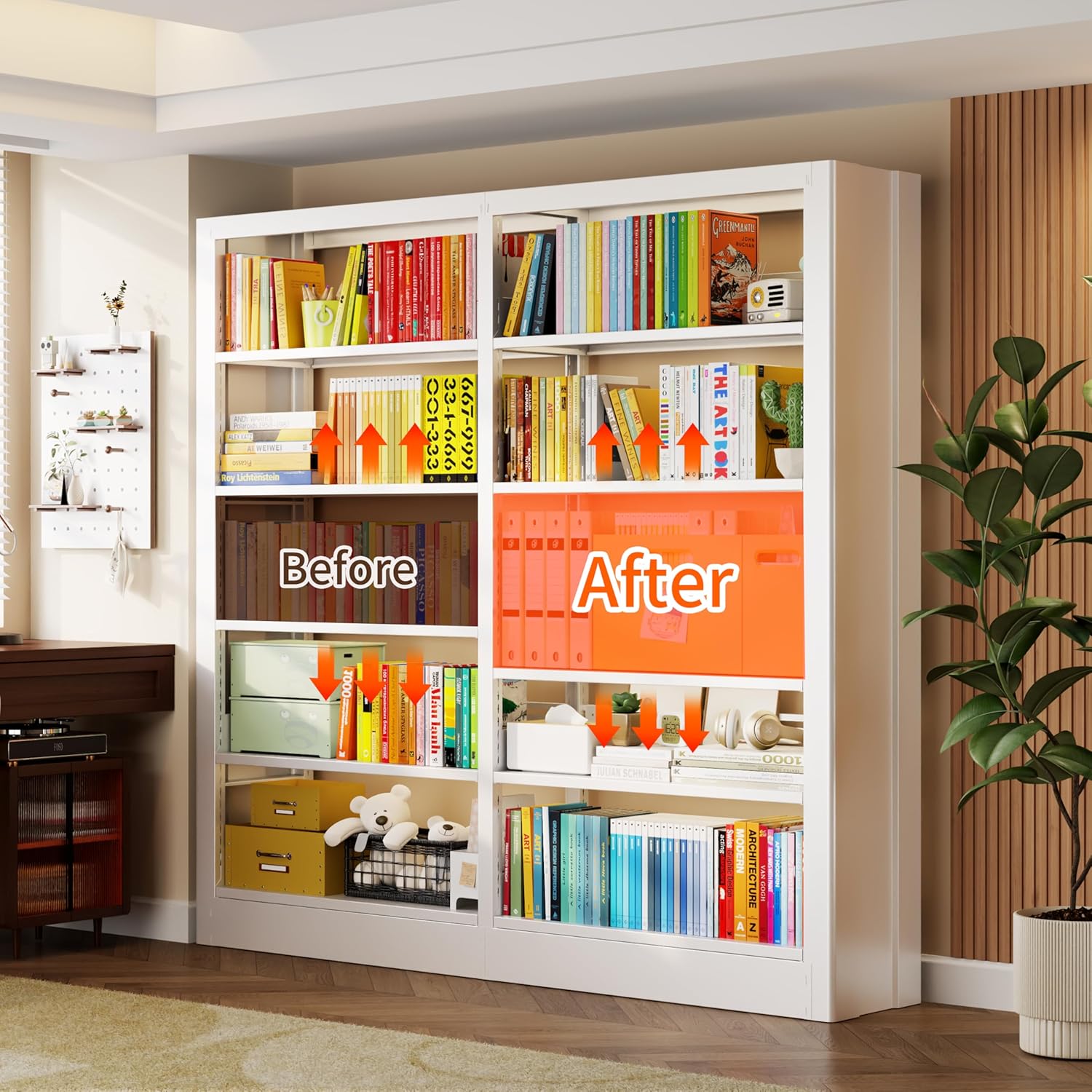 - HIGH QUALITY METAL BOOKSHELF: This wide bookshelf is made of high quality cold-roll steel sheets, ensuring a solid and durable structure capable of supporting heavy objects. The surface of the large book shelf undergoes a fine surface treatment process, and preventing scratches on your fingers. Cold-rolled steel is not only strong but also highly resistant to corrosion, maintaining the modern bookshelf longevity even in damp environments. Whether used in your home study, office, or school library, this bookcases for office provides reliable storage space to help you organize and protect your books and other items