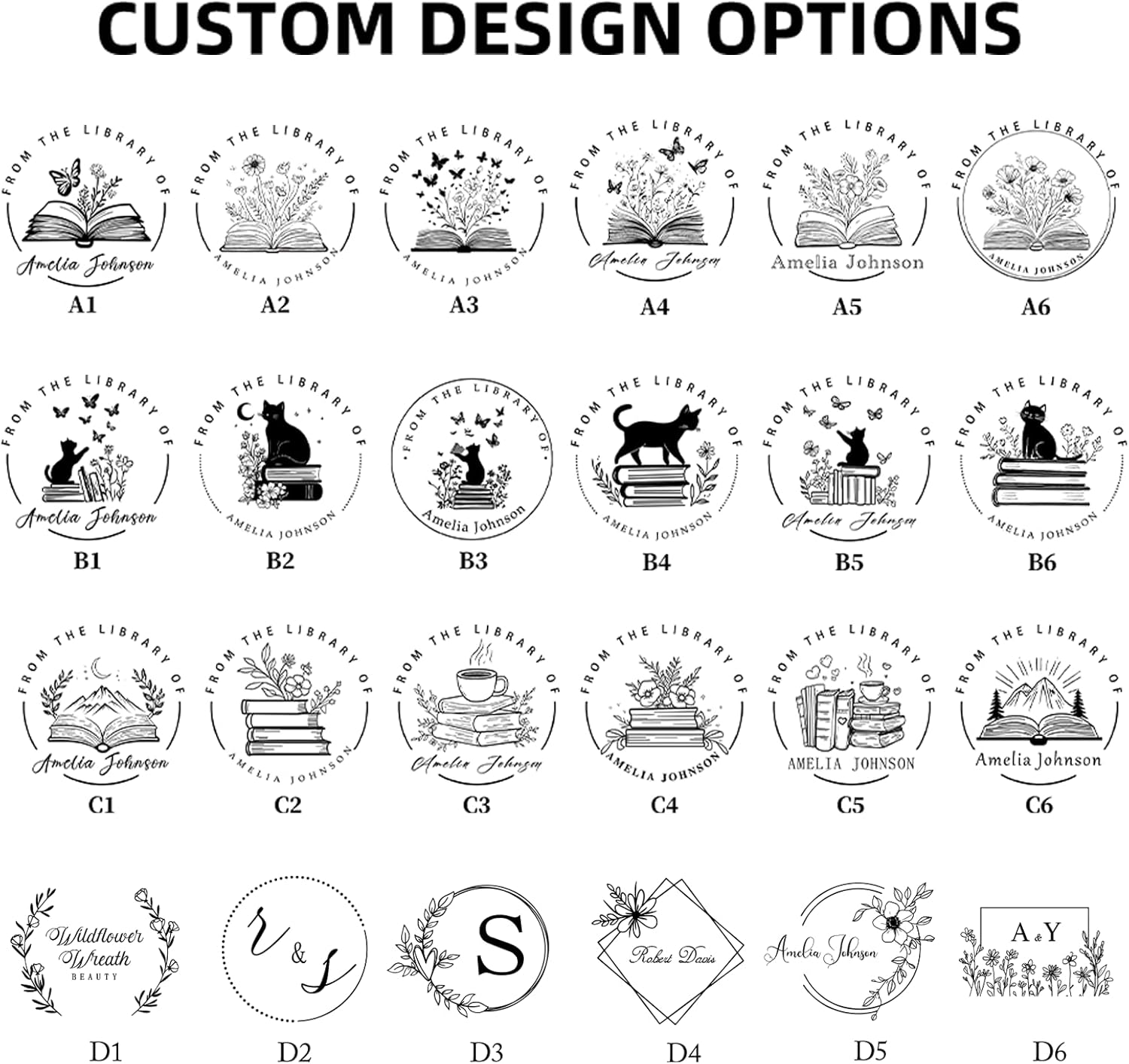 - 【Multiple Design Options】Personalize with “from the Library of” and your name. Choose from various designs, such as cat, book, coffee, and flower patterns, including the elegant Floral Book Press.