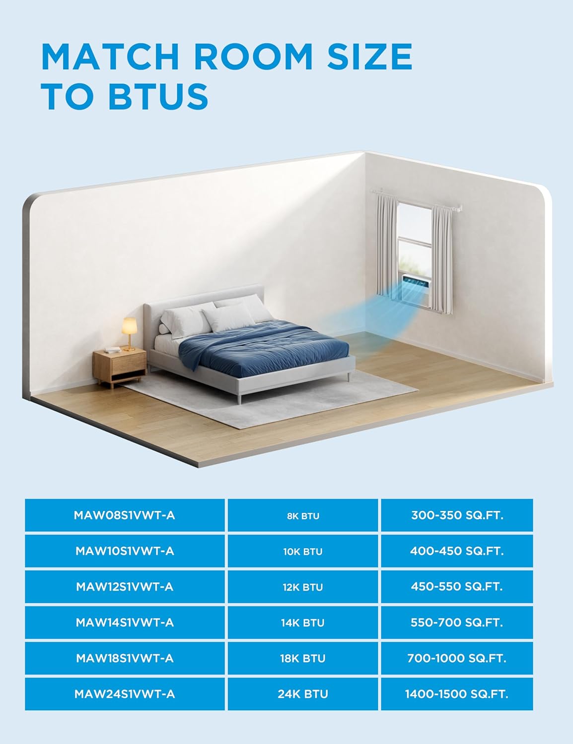 - Powerful Cooling Performance: This 8,000 BTU window air conditioner delivers robust cooling, perfect for beating the summer heat in large rooms up to 350 square feet.