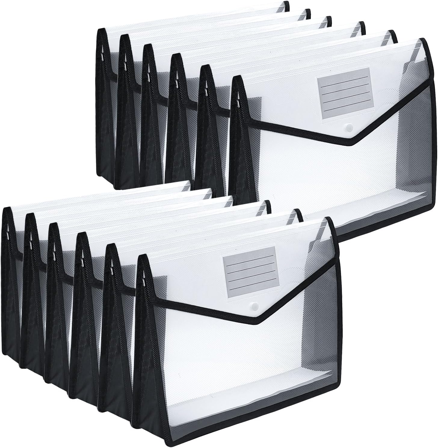 Plastic Expanding File Folder,Envelope Folders for Documents, File Folder Organizer Holder with Snap Closure,Waterproof Transparent File Folder,Large Capacity, Fit Letter/A4 Size (Black-12 Pack)