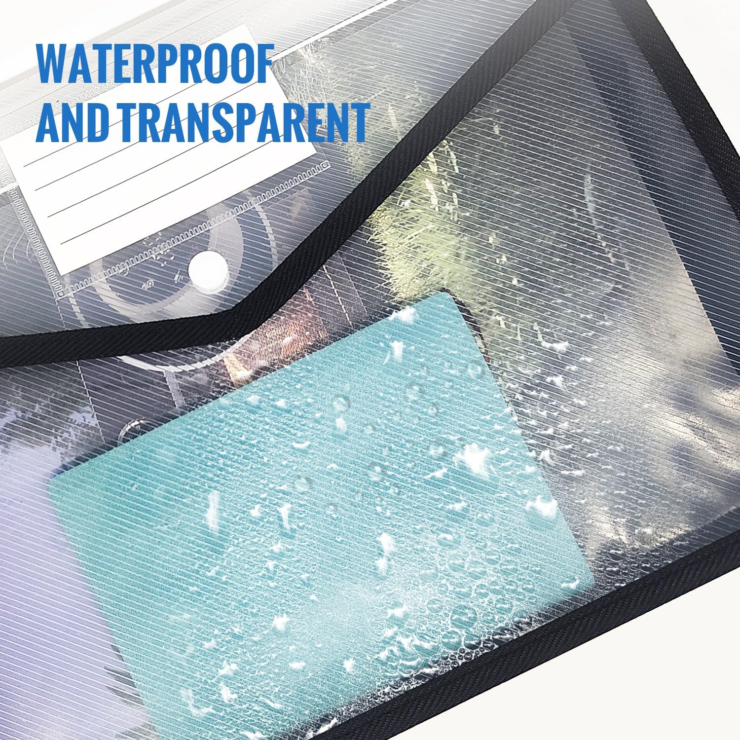 - 【Transparent Design with Label Pocket】Our high-quality clear document bag with snap button is perfect for US letter / A4 size paper and other small items storage. Plastic Envelopes come with a pocket and can be customized with labels for easy document identification.