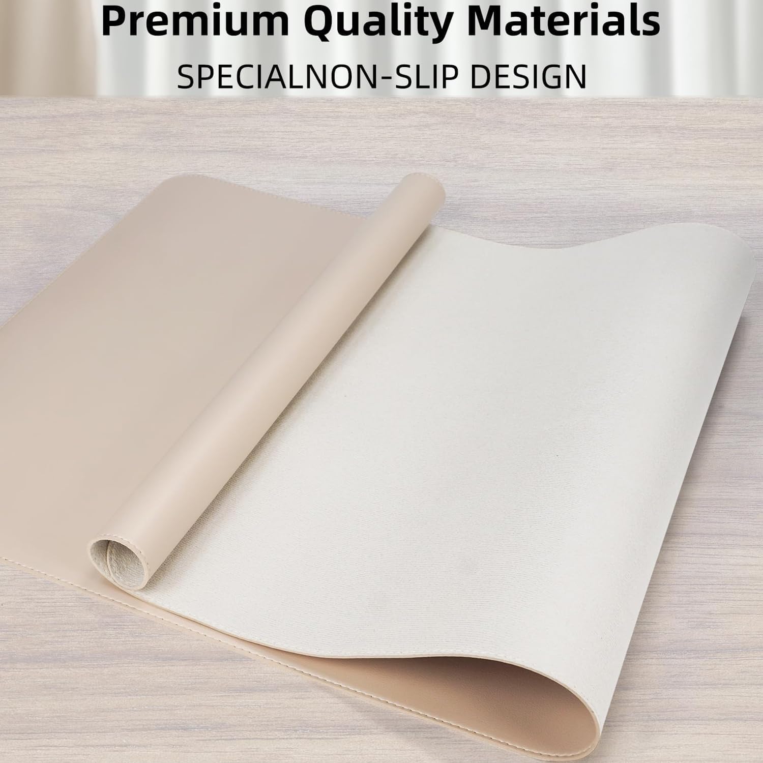 Leather Desk Pad Protector Large Mouse Pad, Stitched Locking Edge Non-Slip PU Leather Desk Mat Laptop Desk Pad Blotter, Waterproof Durable Writing Pad for Office and Home (Beige, 120 x 43cm)