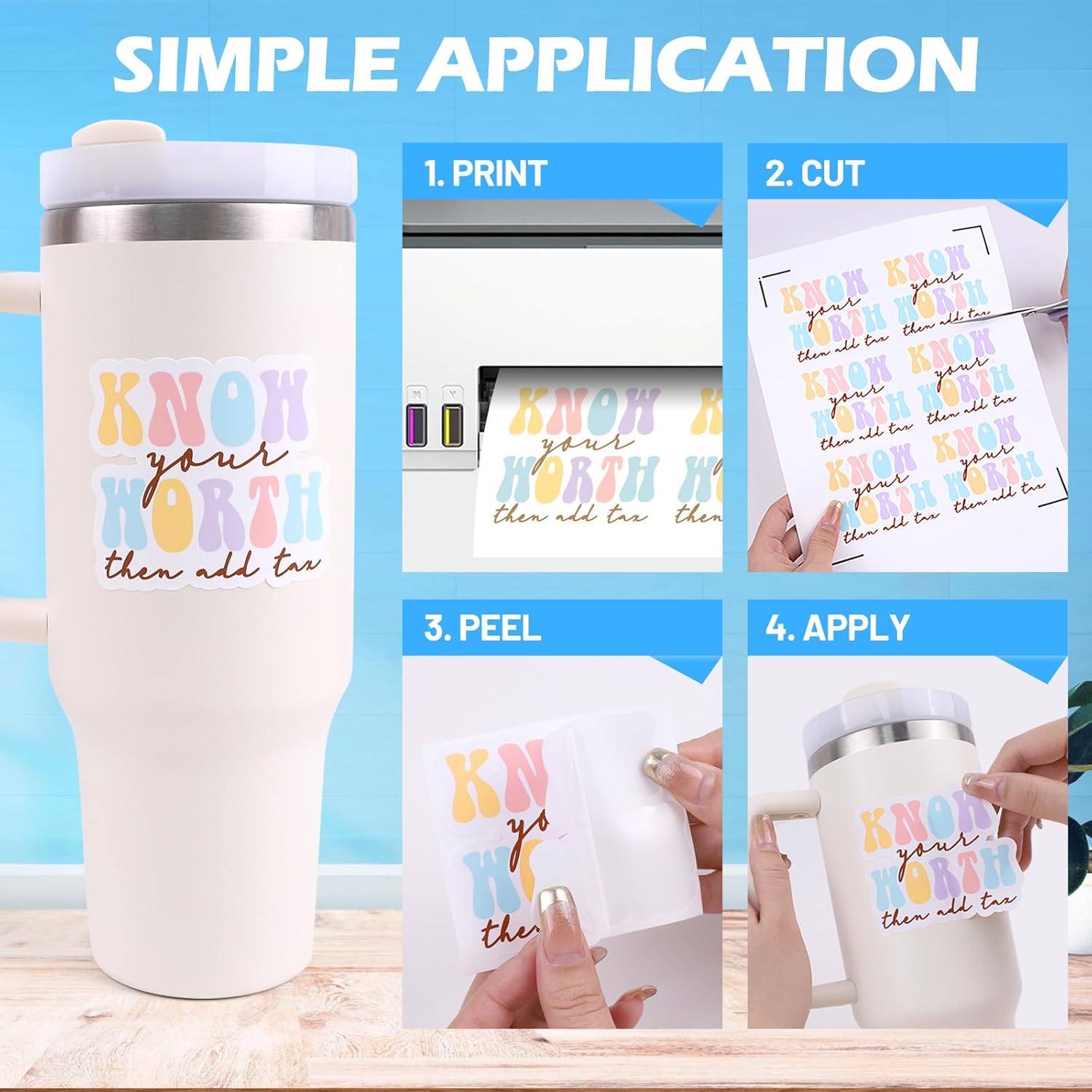 - Perfect for DIY Stickers β Easily create vibrant, personalized vinyl stickers by printing your designs on inkjet printable sticker vinyl. Simply design on your computer and print on printable vinyl sticker paper for high-quality results easily.