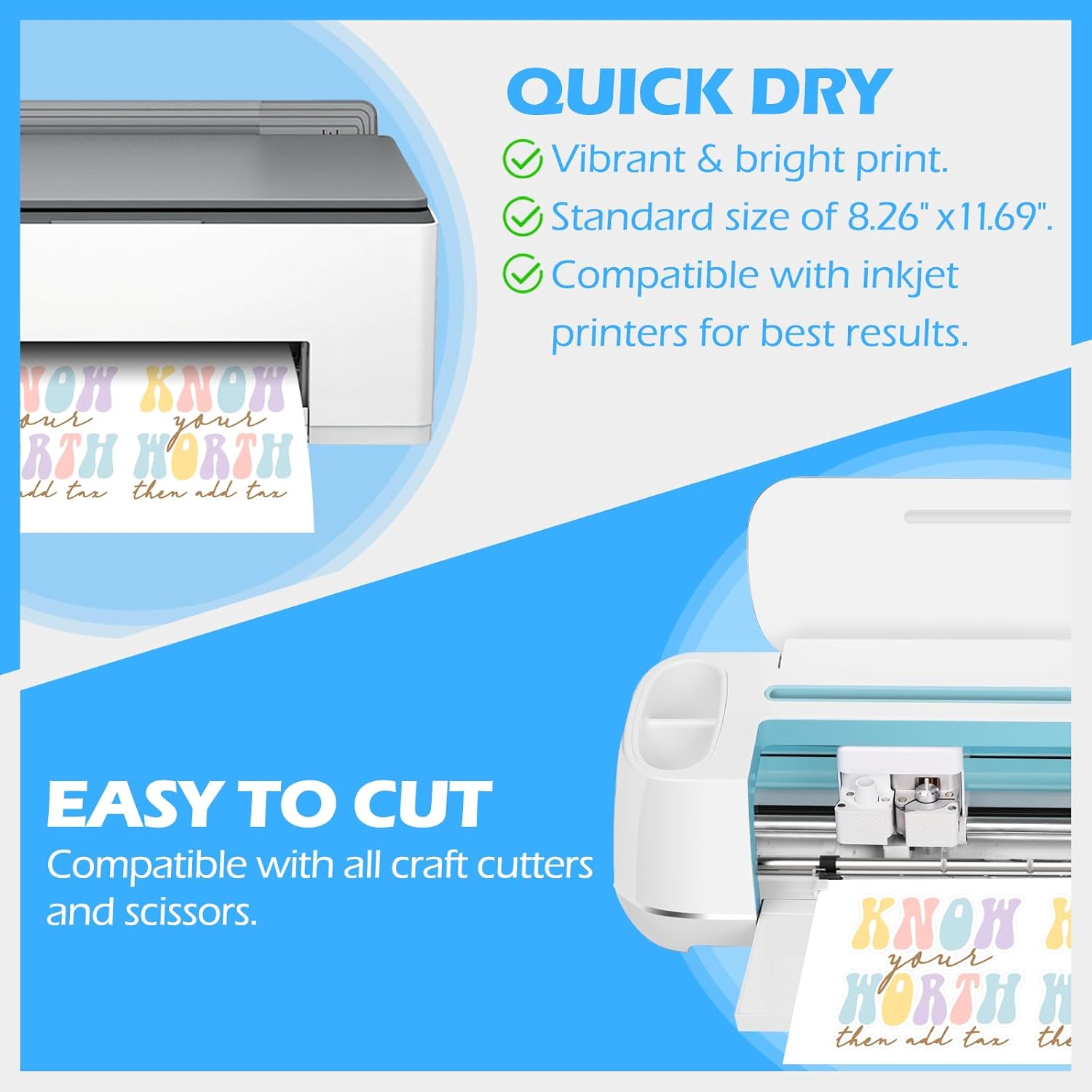 - Printer & Cutter Compatible β This 56 Sheets/Pack A4 standard-sized (8.26" x 11.69") sticker paper for inkjet printer works seamlessly with inkjet printers and is compatible with all craft cutters. Itβs also easy to cut with scissors for added convenience, making it the perfect sticker paper for printer.