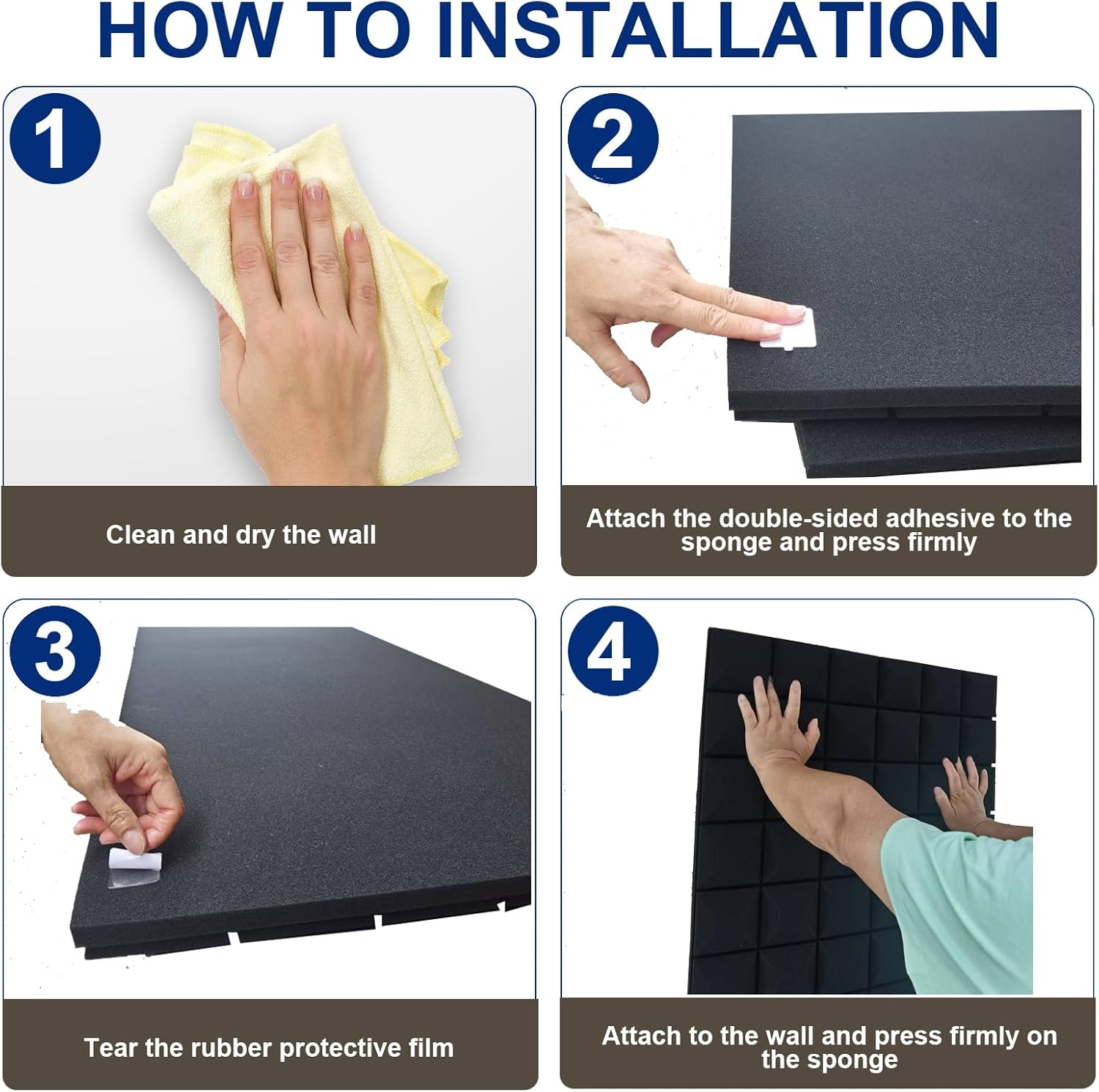 - 【Easy to install】Our noise dampening panels come with double tape sticker and installation notes,18 PCS sticker for each foam, No Special Tools Required for Installation.When use stickers,please make sure the wall is flat and free of foreign matter , which will affect the effect of the paste.