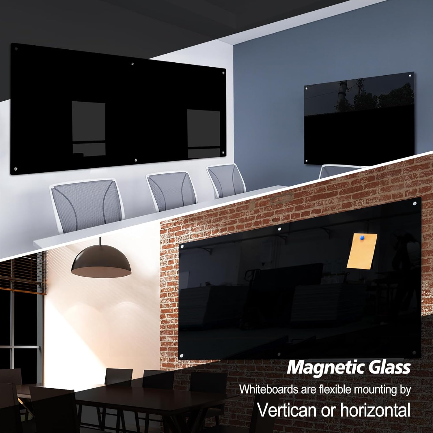 Magnetic Glass Writeboard 72"x48" Premium Tempered Dry Erase Boards Wall Mounted Frameless Whiteboard Bulletin Message Boards (Black)