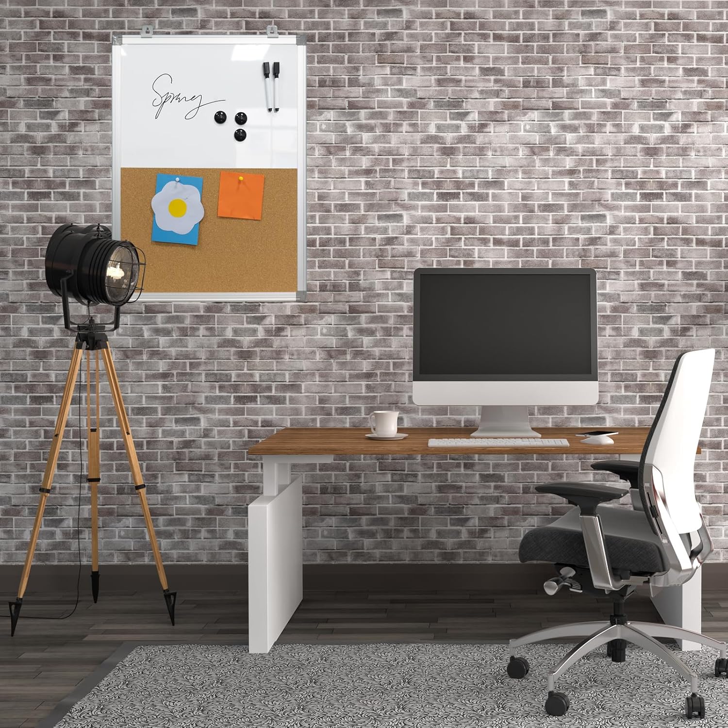 Combination Writeboard 24"x 18" Magnetic Whiteboard & Cork Board Aluminium Frame Dry Erase Board Bulletin Board Wall Mounted Memo Message