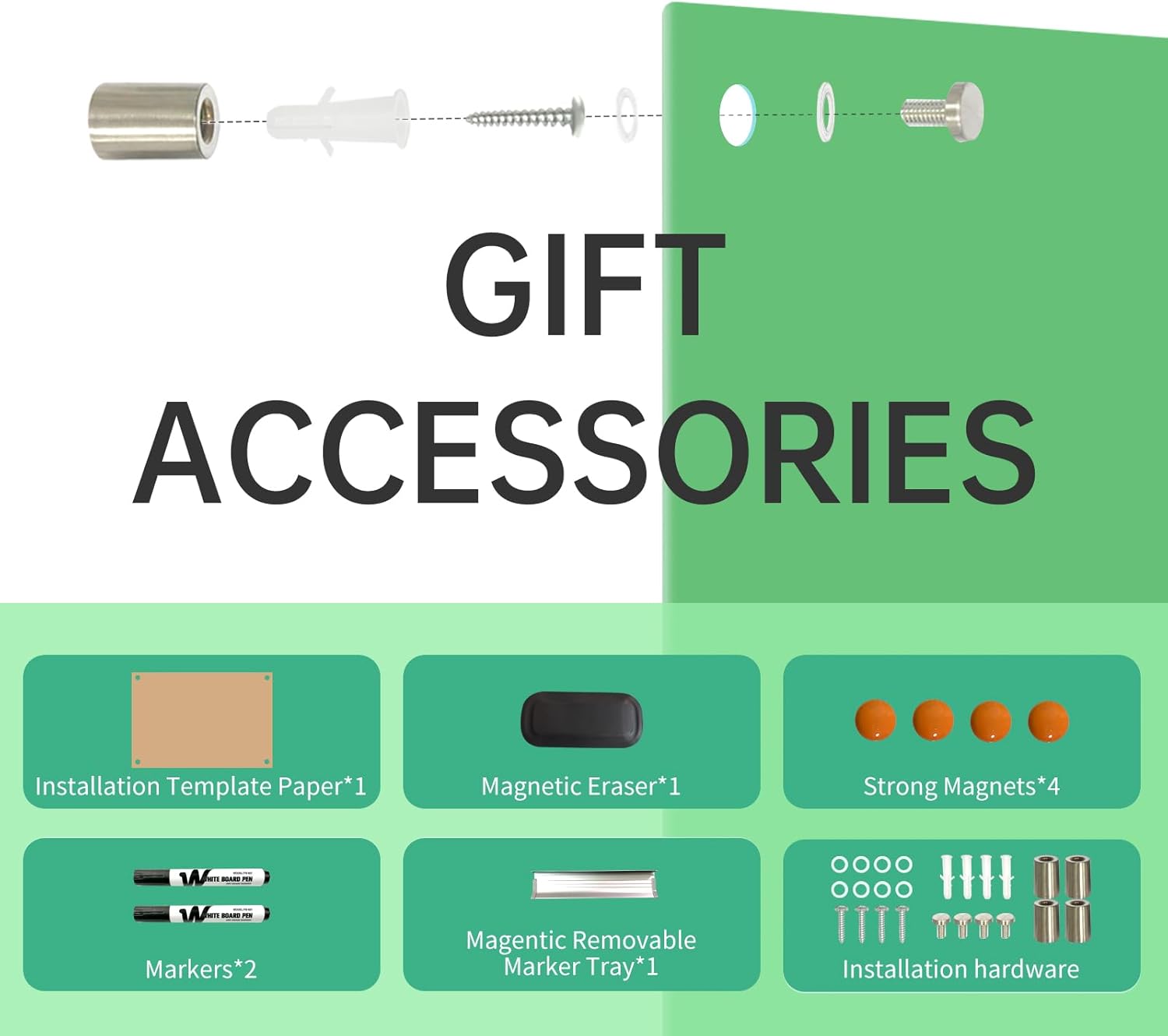 - Easy to Install: Glass Whiteboard Magnetic Dry Erase White Board is easy to install. Through the assembly instructions provided by us, you can easily install the whiteboard vertically or horizontally on the wall.