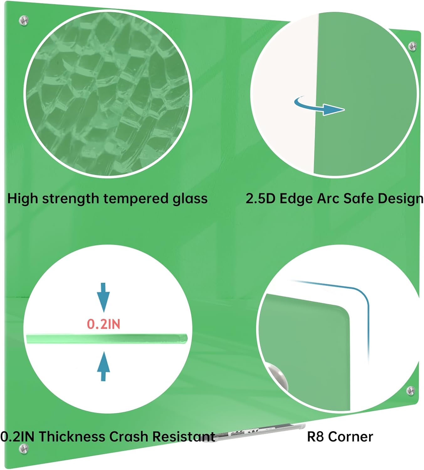 Magnetic Glass Dry Erase Board - White Board 48 x 36 Inch Wall Mounted Glass Whiteboard, Large Frameless Glass White Board for Wall Office, Home & School, Green