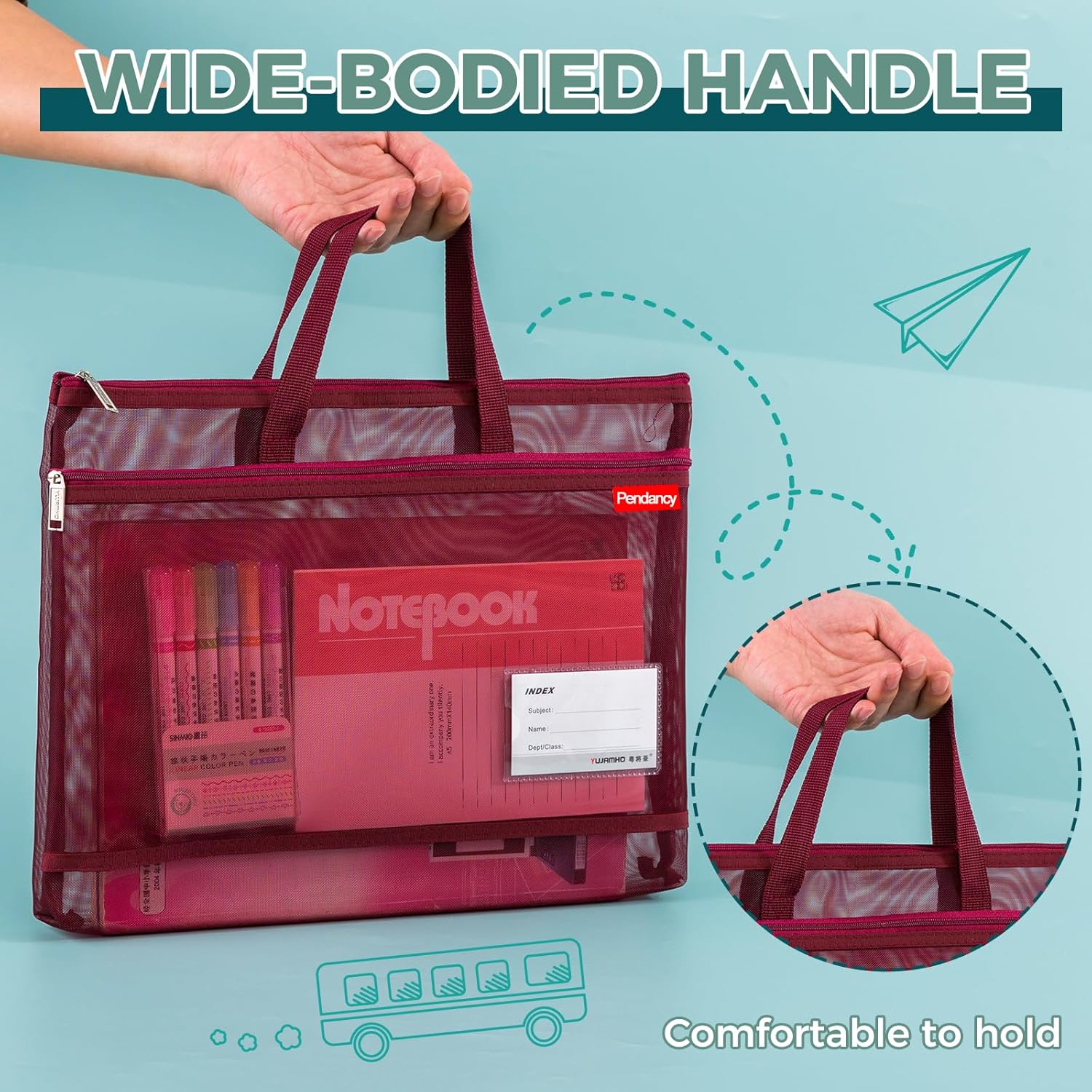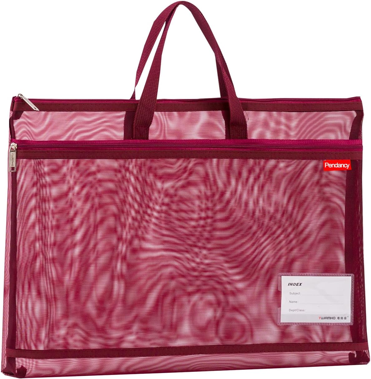 Pendancy Mesh Zipper Pouch A4 Size, Large Double Pocket Lightweight Nylon Transparent File Bag with Handle, 11x13.8 in Foldable Document Storage for Puzzle Project/Cross Stitch/Travel/Office (Red)