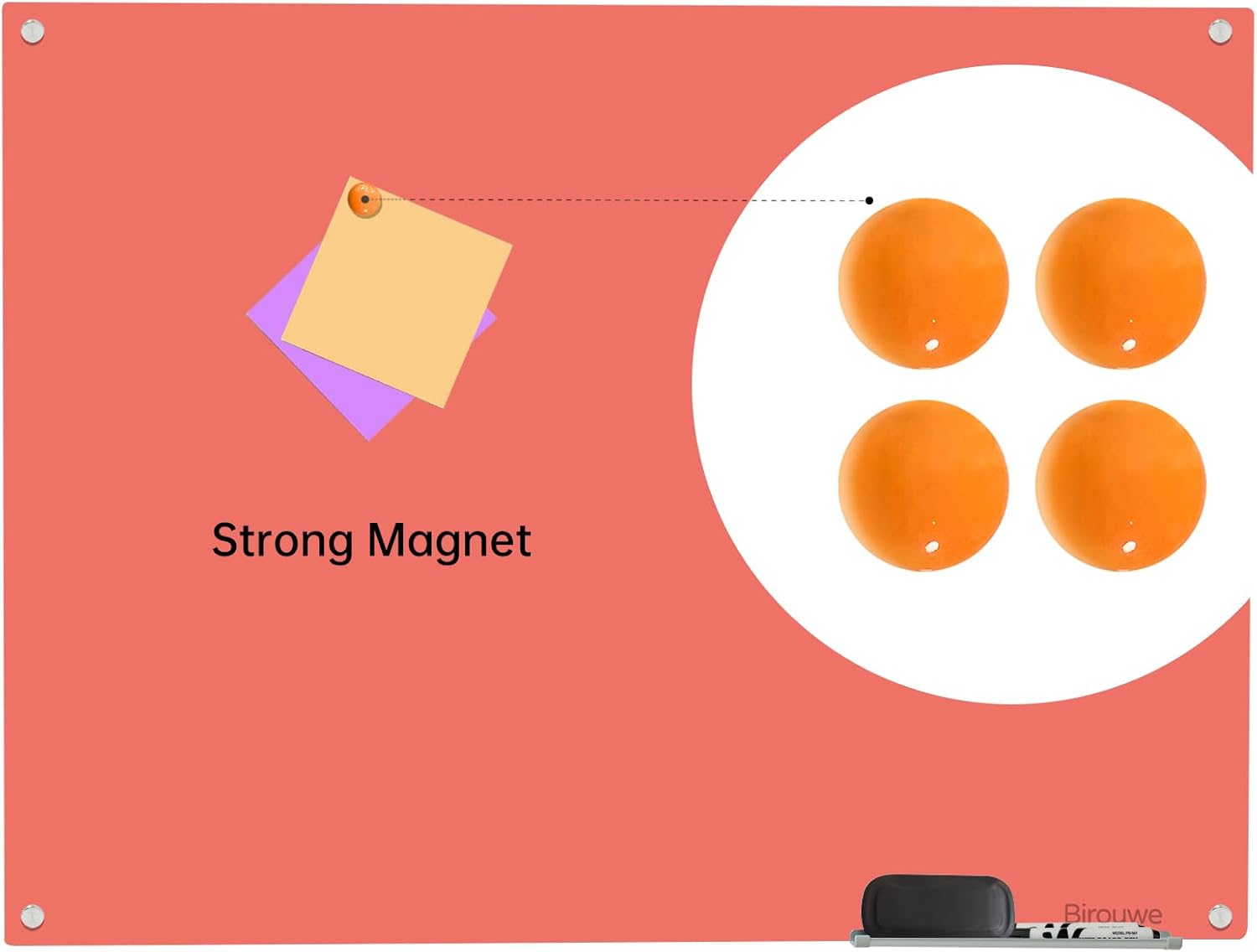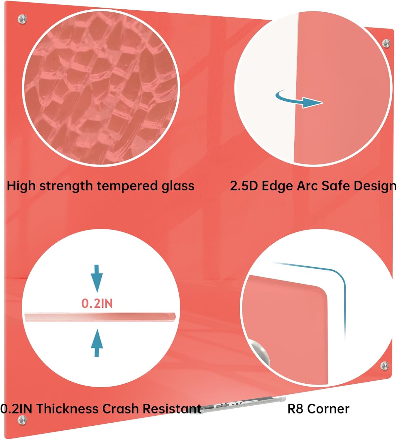 Magnetic Glass Dry Erase Board - White Board 48 x 36 Inch Wall Mounted Glass Whiteboard, Large Frameless Glass White Board for Wall Office, Home & School, Red