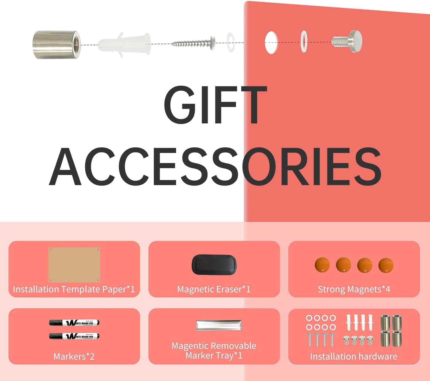 - Easy to Install: Glass Whiteboard Magnetic Dry Erase White Board is easy to install. Through the assembly instructions provided by us, you can easily install the whiteboard vertically or horizontally on the wall.