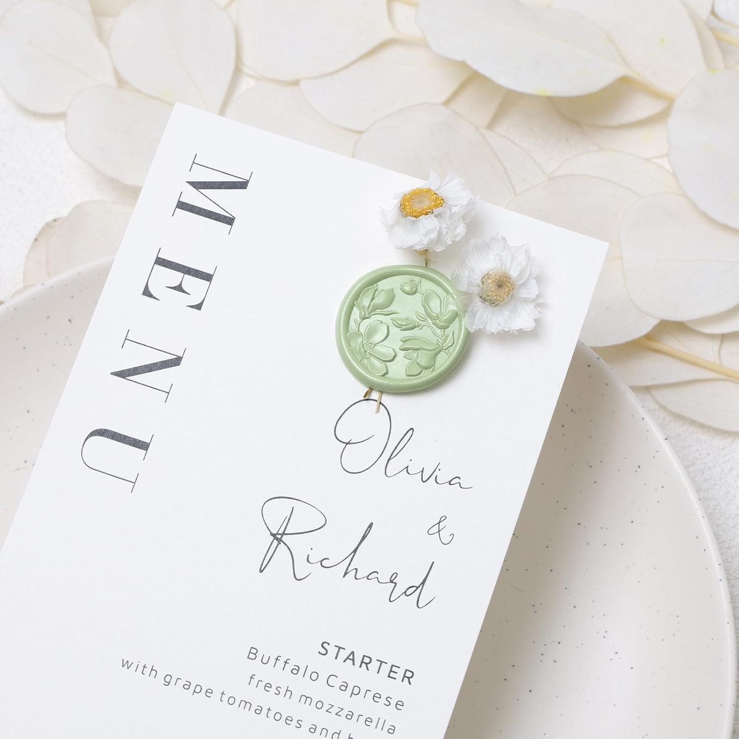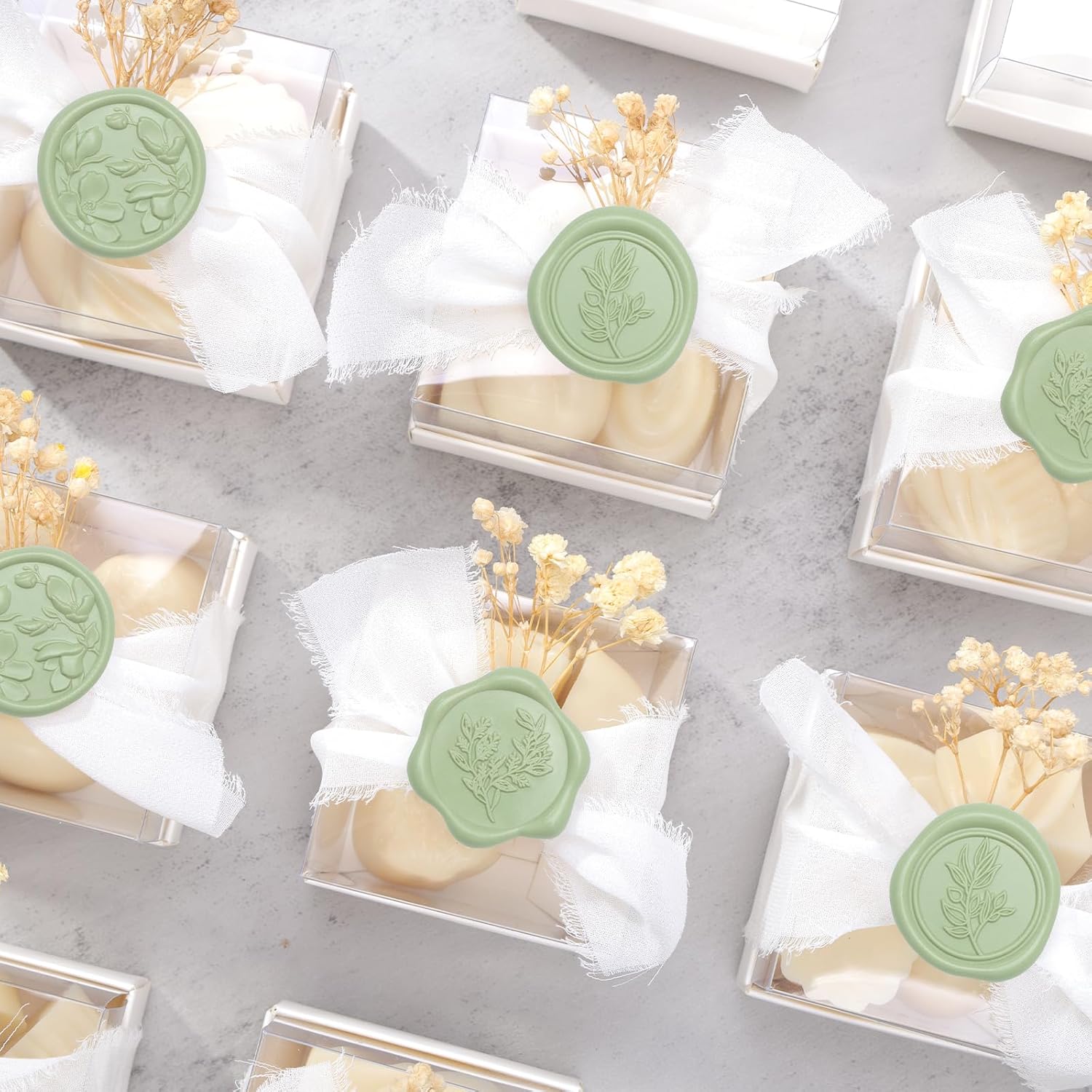 - PACKAGE INCLUDES - You will receive 60 pieces of sage green color wax seal stickers, (20 stickers per design) - Magnolia & Eucalyptus & Olive Branch. The wax seal sticker diameter is 1.2 inches/30mm and with almost the same size of adhesive on the back. Weighs 0.02oz per seal and may add weight to envelopes.