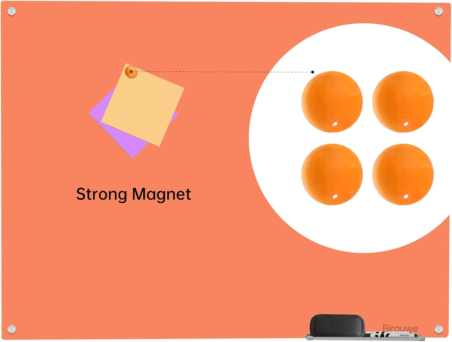 Magnetic Glass Dry Erase Board - White Board 48 x 36 Inch Wall Mounted Glass Whiteboard, Large Frameless Glass White Board for Wall Office, Home & School, Orange