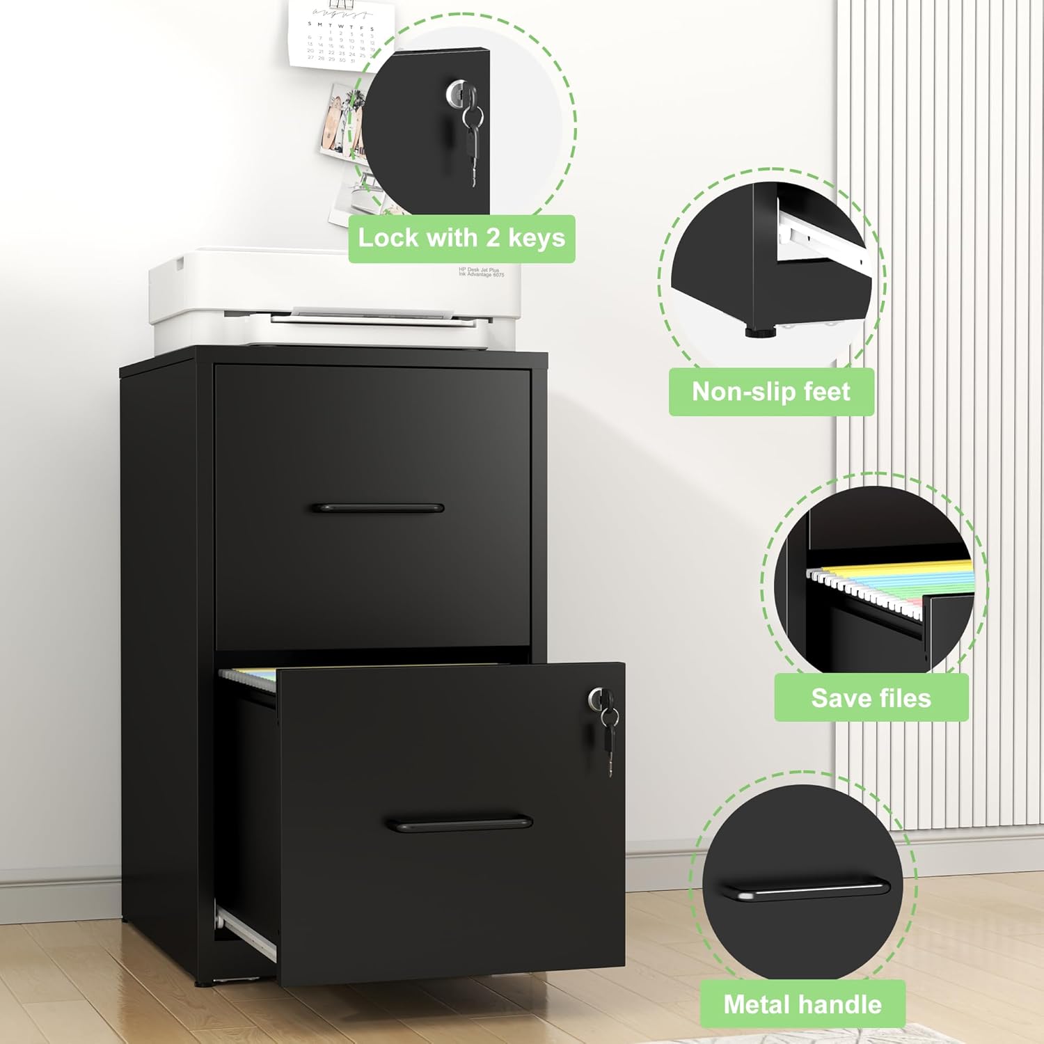 - 【Unique Design】 The steel file cabinet features easy-pull handles for quick access, metal slider rails for smooth operation, and non-slip feet for stability. Durable, functional, and perfect for any workspace