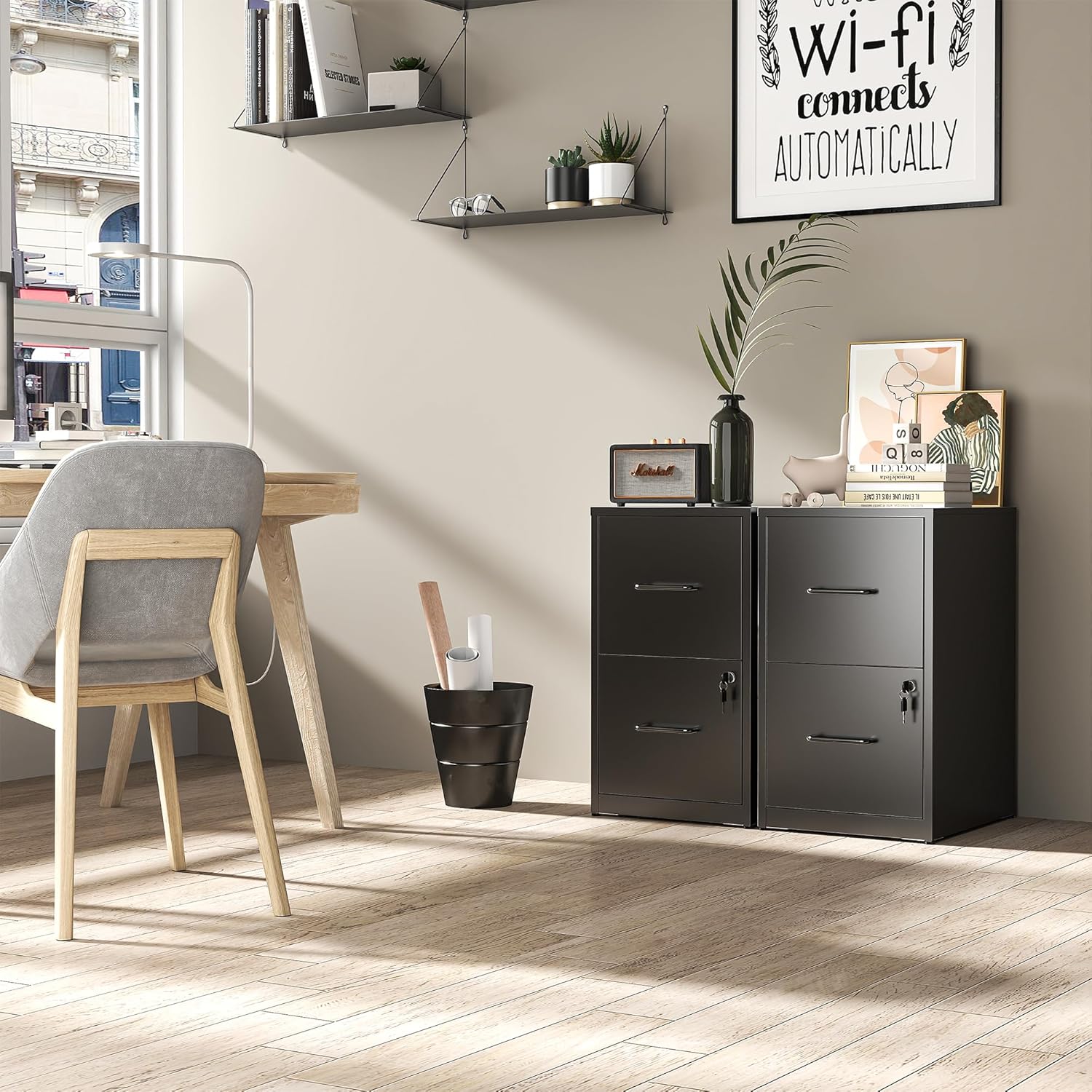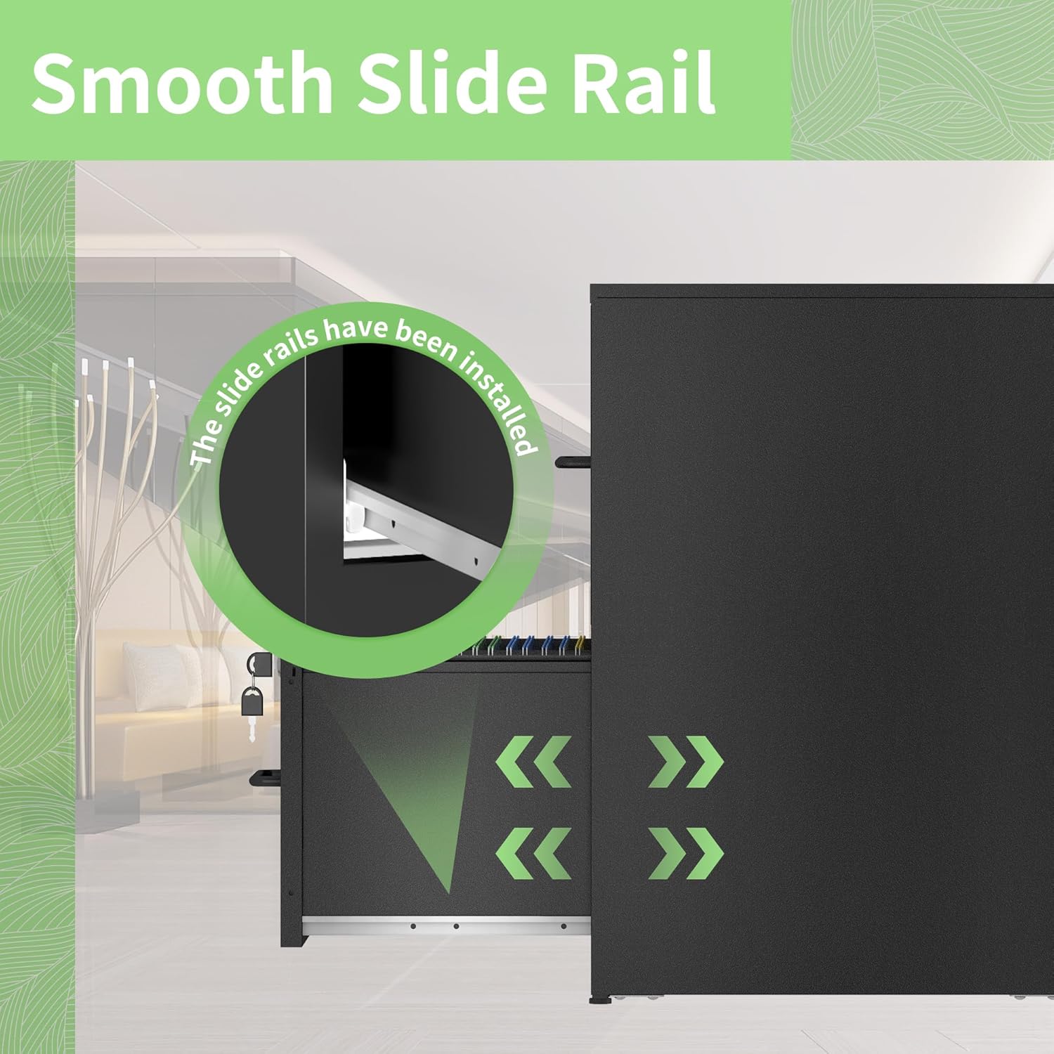 - 【Solid & Durable】Crafted from whole-in-one reinforced high-strength cold-rolled steel, this locking lateral file cabinet ensures remarkable sturdiness and longevity. Each drawer can bear a maximum load of 22 lbs, showcasing its robust construction. The combination of a strong structure and a powder coating surface process makes this wide cabinet highly resistant to rust, scratches, and ensures easy cleaning, maintaining its pristine appearance over time.