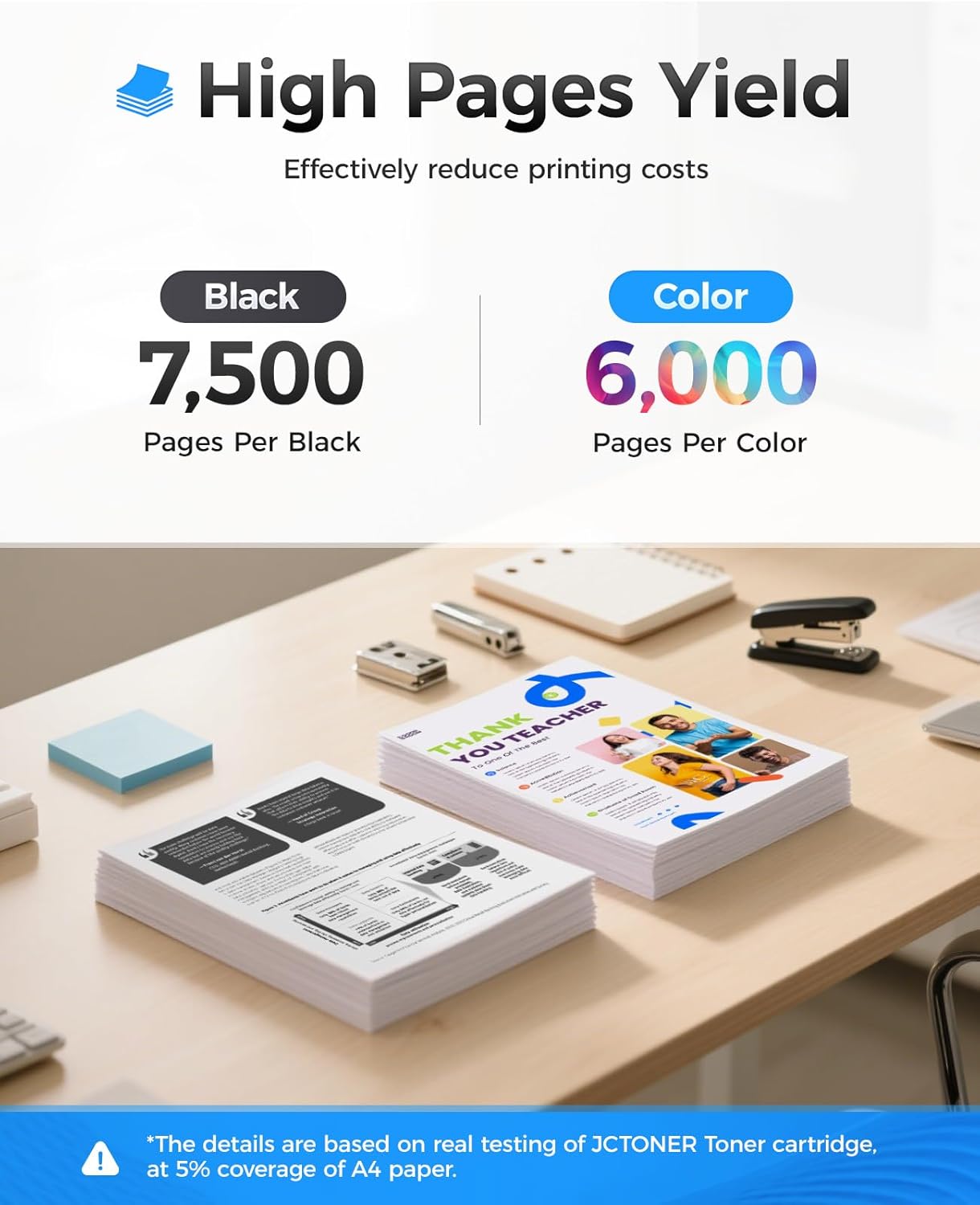 - High-Yield: up to 7,500โฌ pages per 414X Black and 6,000 pages per 414X Color (Total 25,500 pages, 5% coverage).