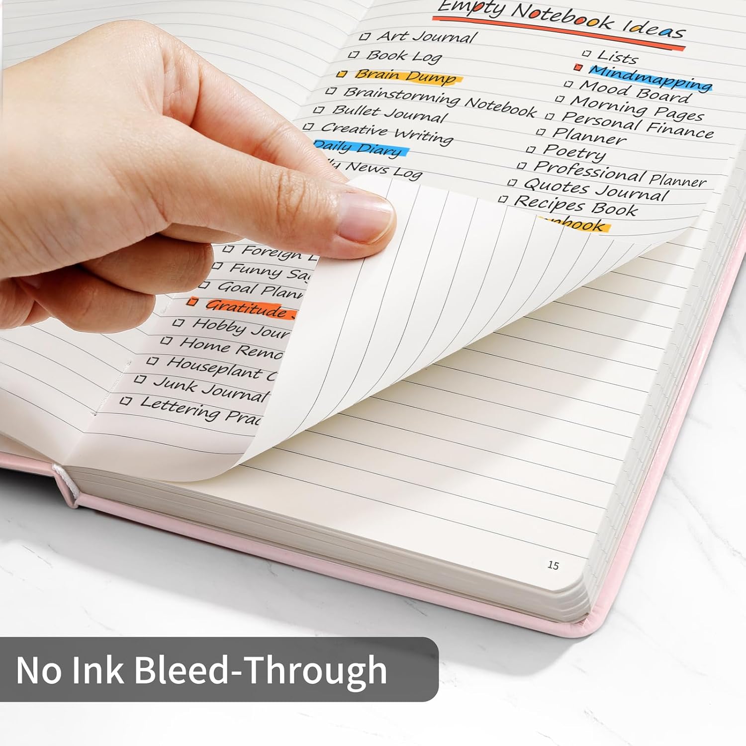 - Multifunctional Cover - The hard cover is made of vegan leather, and designed with a pen loop, an elastic band, two ribbon page markers, an expandable inner pocket.