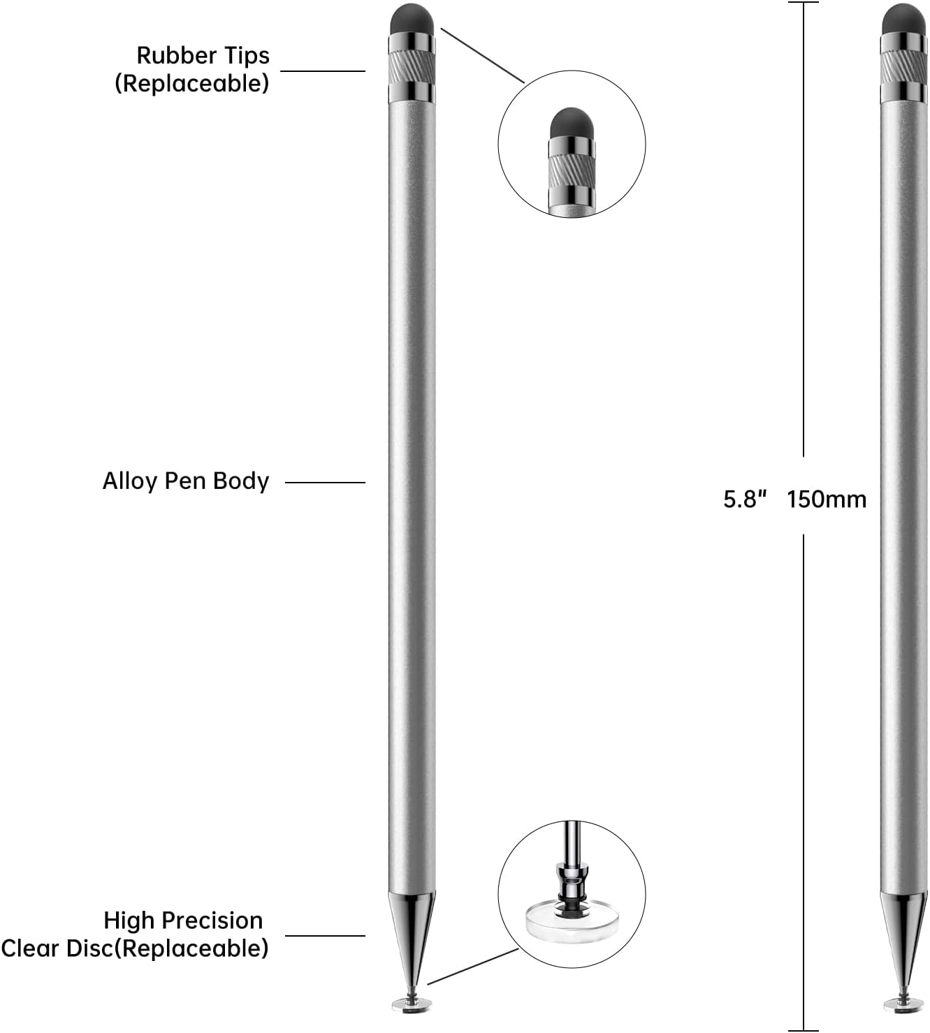 Bopomofo Stylus (5 Pcs), 2-in-1 Stylus Pen for Touchscreen, High Precision and Sensitivity, Suitable for iPhone/ipad/Android Tablets, Compatible with Touch Screens,Silver