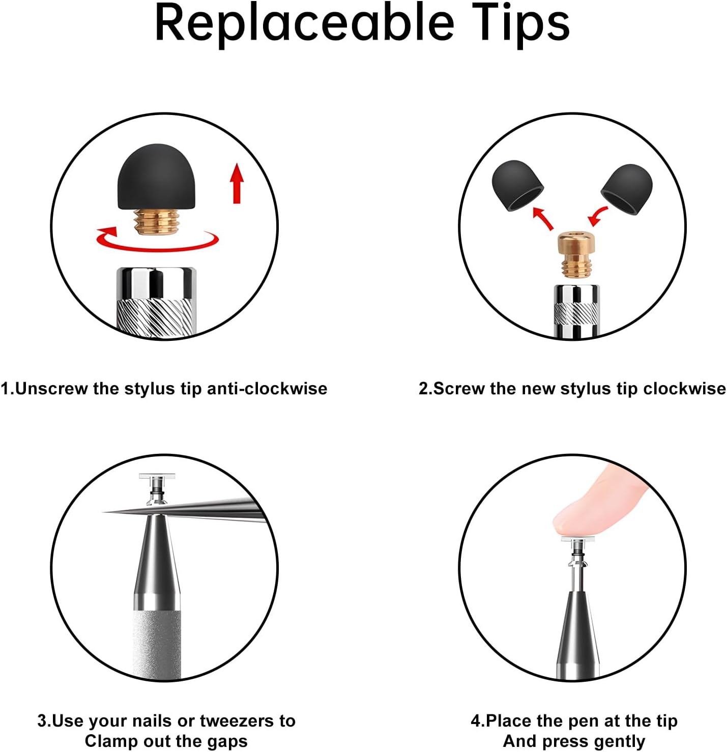 - 【What You Get】You get 5 different colored stylus pens and a portable replacement set of 6 rubber nibs and 3 clear nibs in one package.