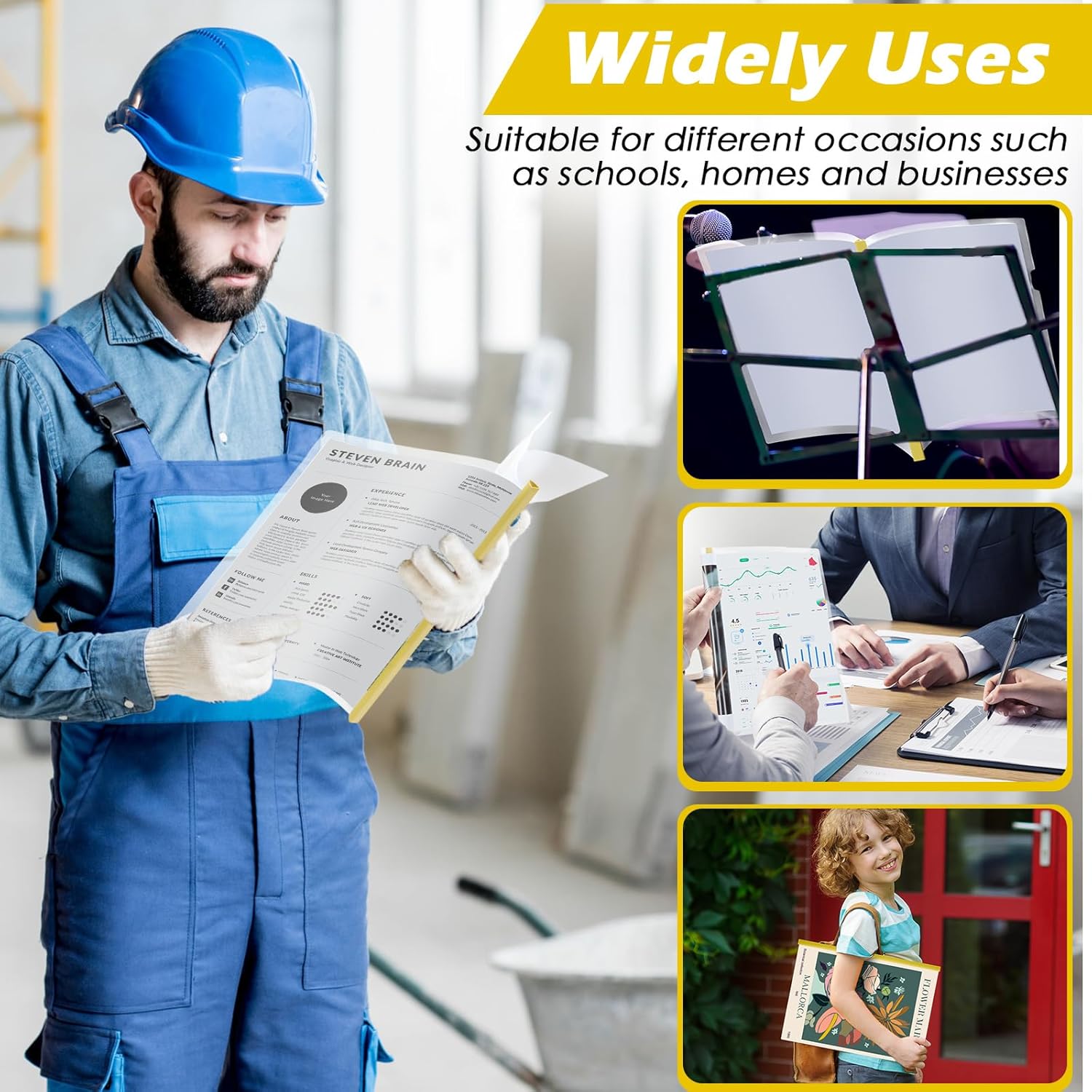 - Widely Uses: clear resume covers with slider bars can store documents, files, plan calendars, business plans, design drafts, book reports, sheet music, test papers, and you can apply it in the hospital, office, home, concert, speech and more